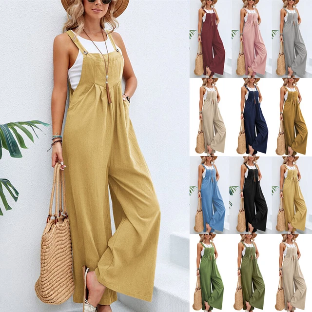 Damen Loose Jumpsuit Overall Aus Baumwolle - Verstellbare Träger Für Perfekte Passform