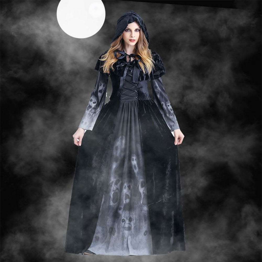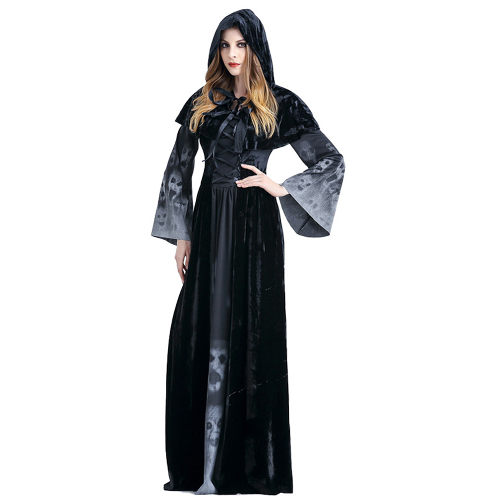 Gothic Vampir Kostüm Damen - Mittelalter Kleid Mit Totenkopf Für Halloween & Karneval