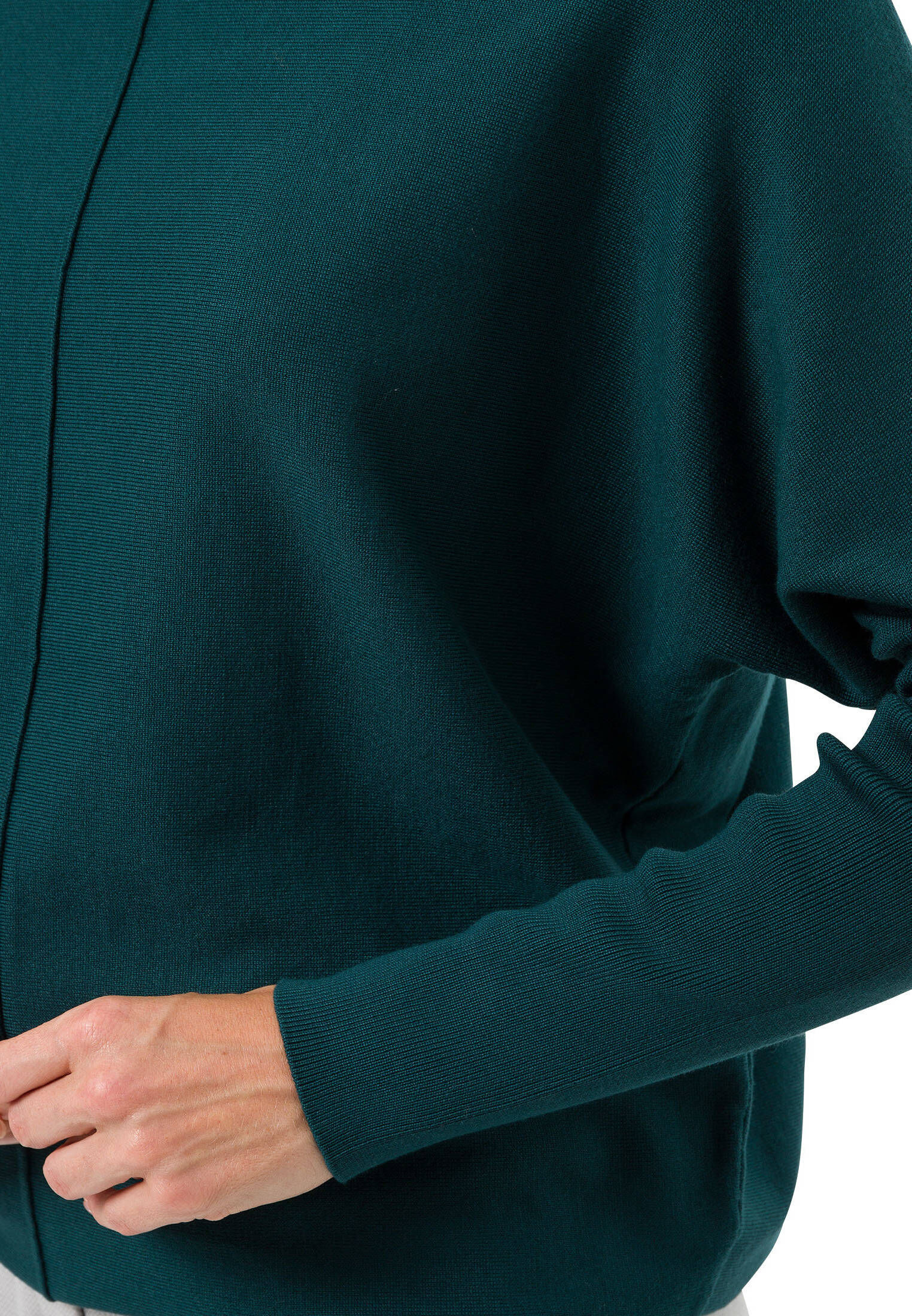 Dieser wunderschöne Pullover von zero ist genau das Richtige für kühlere Tage! Der figurbetonte Schnitt umspielt deine Silhouette perfekt und die trendigen Trompetenärmel geben dem klassischen Pullover einen modernen Twist. Aus weichem Strickmaterial gefertigt, fühlt er sich angenehm auf der Haut an und wärmt dich an kühlen Abenden. Der klassische Rundhalsausschnitt passt zu allem - ob alleine oder über einem Shirt getragen. In uni gehalten ist er super vielseitig kombinierbar mit Jeans, Röcken oder Hosen. Unser Model (178cm) trägt Größe 36 - such dir einfach deine passende Größe aus. Perfekt für Office, Freizeit oder einen gemütlichen Abend zu Hause. Warum langweilige Pullover, wenn es auch so stylisch geht? Ein Must-have für jede Herbst-/Winter-Garderobe!