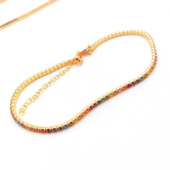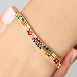 Wunderschönes Tennisarmband für besondere Anlässe! Mit funkelnden Regenbogen-Zirkonia-Steinen, die elegant glitzern. Verstellbare Schnalle, passt sich jedem Handgelenk perfekt an. Aus versilbertem Material, hautverträglich und langlebig. Perfekt für Partys, Dates oder den Alltag. Tolle Geschenkidee für Mutter, Freundin oder Ehefrau - zu Geburtstag, Weihnachten oder Muttertag. Einfach anlegen und strahlen! Macht jedes Outfit sofort festlicher. Ein Schmuckstück, das garantiert bewundert wird!