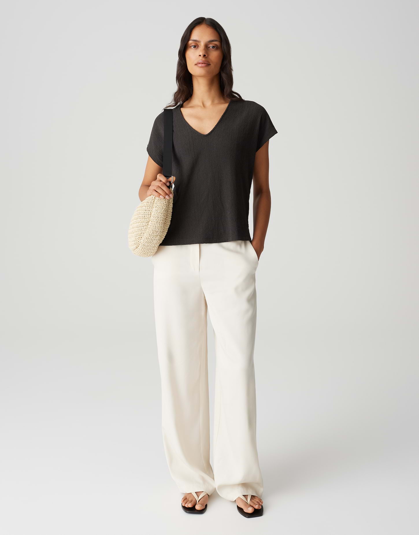 • OPUS Damen Slim Shirt Kurzarm - Melangiertes Rippjersey Mit Figurbetonter Passform