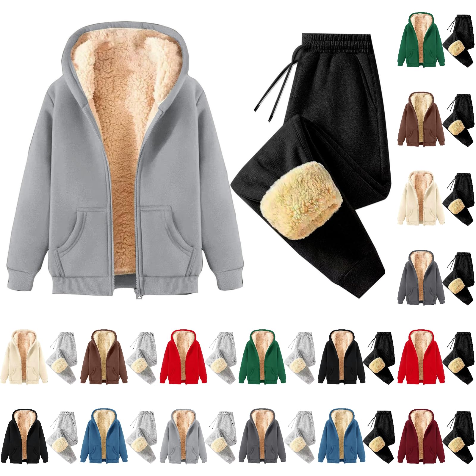 • Damen Sportanzug 2-teilig Winter - Jogginganzug Mit Hoodie Und Hose
