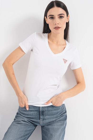 Ein Must-Have für deine Basics-Kollektion! Dieses Guess Jeans T-Shirt überzeugt mit seinem lässigen Regular Fit. Der V-Ausschnitt ist dezent und schmeichelhaft. Aus 95% Baumwolle und 5% Elasthan - super bequem und dehnbar! Das gepatchte Guess-Logo verleiht dem Shirt den typischen Marken-Look. Maschinenwaschbar und pflegeleicht. Perfekt für den Alltag - ob zu Jeans, Rock oder Leggings. Ein zeitloses Basic, das sich mit allem kombinieren lässt. Hol dir dieses stylische T-Shirt - es wird dein neuer Lieblingsbegleiter!