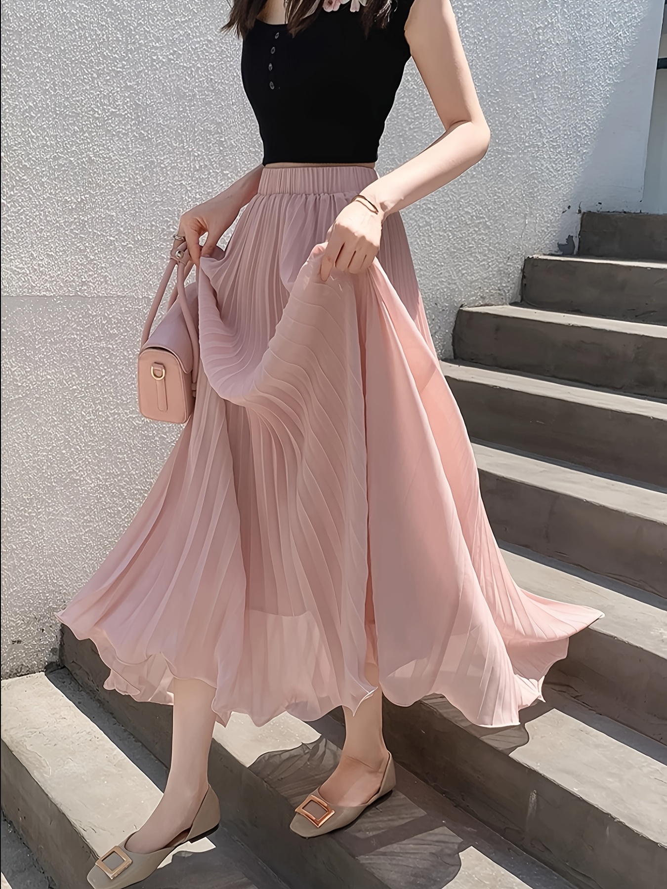 Dieses Chiffon-Kleid ist dein neuer Sommer-Liebling! Aus leichtem, atmungsaktivem Polyester fühlt es sich super angenehm auf der Haut an. Der V-Ausschnitt ist dezent und schmeichelhaft, die plissierten Details geben dem Kleid eine elegante Note. Und das Beste: Es hat seitliche Taschen! Perfekt für deine Schlüssel oder das Handy. Die A-Linie und die Midilänge passen zu fast jeder Figur. Ob für die Arbeit, einen Sommerabend oder als Hochzeitsgast - dieses Kleid macht immer eine gute Figur. In der Maschine waschbar und trocknet schnell. Ein echter Allrounder für deinen Kleiderschrank!