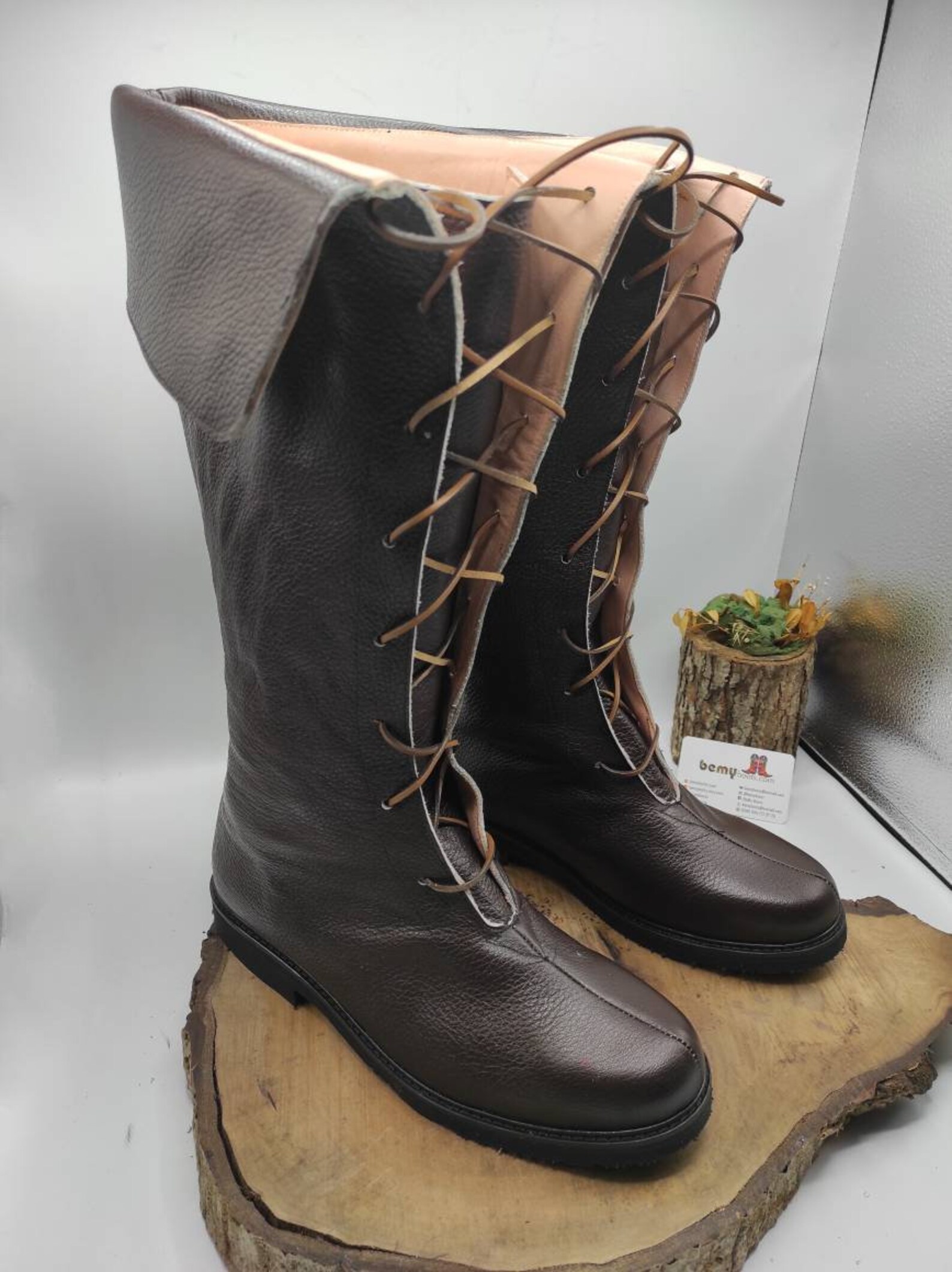 Mittelalter Stiefel Herren Damen - Wikinger Stiefel PU Leder Unisex Braun