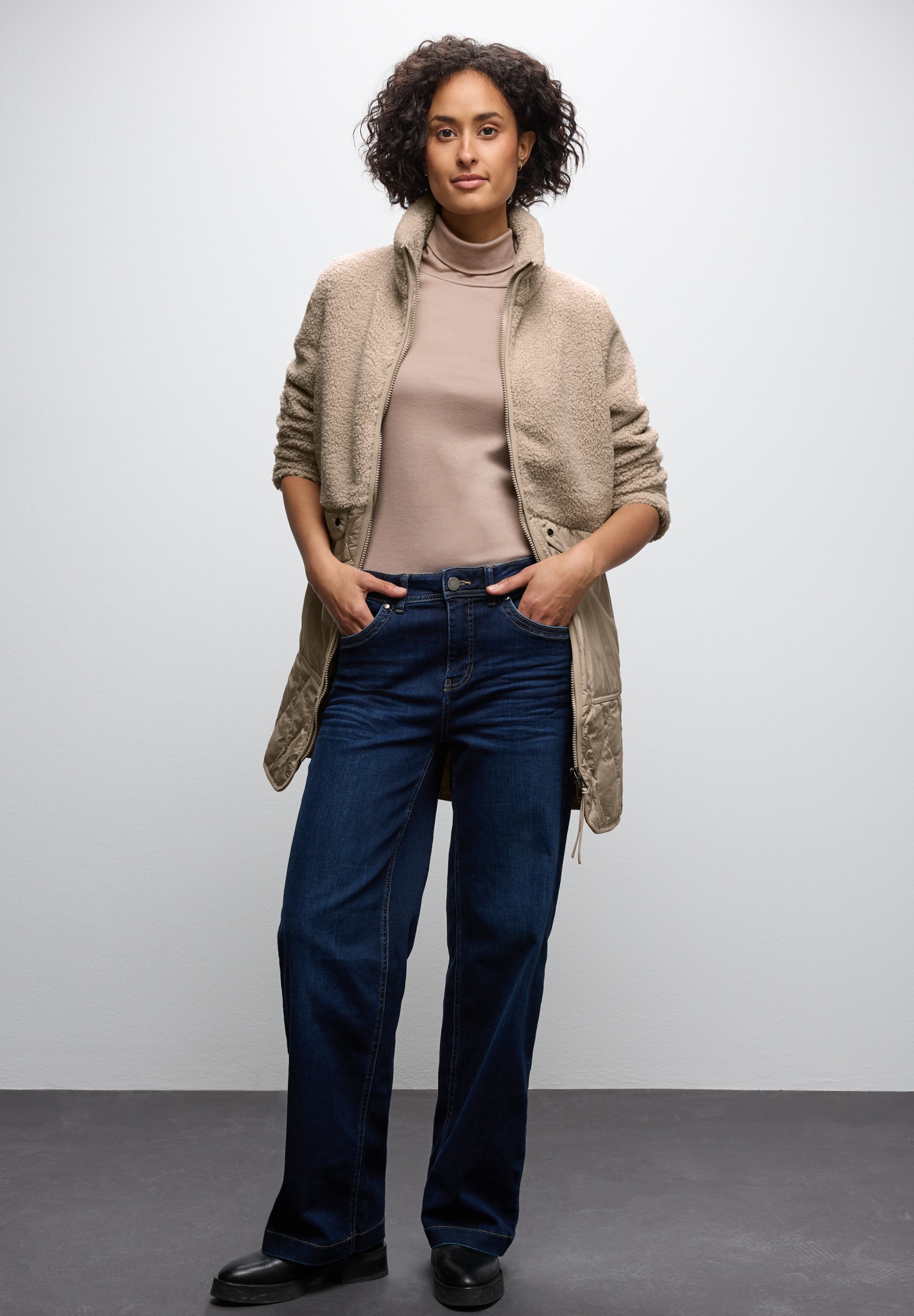 Boah, dieser Mantel von Street One ist einfach der Hammer für die kühleren Tage! Stell dir vor: Oben total kuscheliger Teddy-Stoff, der dich einlullert wie eine warme Umarmung, und unten moderner Stepp-Look, der richtig was hermacht. Das nenn ich mal einen gelungenen Mix! Der Stehkragen gibt dir extra Stil und hält den Wind ab, und der Reißverschluss schließt schön gleichmäßig. Praktisch sind auch die Taschen mit Knopfverschluss - da bleibt alles sicher verstaut. Perfekt für den Stadtbummel, wenn's mal frischer wird, oder fürs Café mit den Mädels. Und die Passform? Bei Größe 38 sind's etwa 63 cm Armlänge und 60 cm Weite unten - also nicht zu lang, nicht zu kurz, einfach ideal. Macht dich schlank und trotzdem gemütlich. Ob mit Jeans und Boots oder über einem Kleid - der Mantel geht immer! Und die Qualität? Typisch Street One: sieht nicht nur gut aus, sondern hält auch was aus. Wirst du lieben, versprochen!