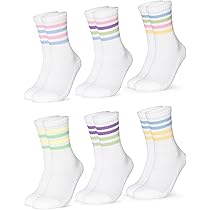 Perfekte Socken für sportliche Tage! Dieses 6er-Pack mit drei verschiedenen Streifen-Designs versorgt Dich mit der idealen Fußbekleidung für Tennis, Alltag und Freizeit. Aus weicher Baumwolle gefertigt, die Feuchtigkeit super aufnimmt und für trockene, zufriedene Füße sorgt. Die Socken sind elastisch und passen sich perfekt an Deine Fußform an - ohne zu drücken oder zu rutschen. Das retro-inspirierte Streifendesign in Weiß mit Farbakzenten sieht frisch und sportlich aus. Perfekt nicht nur fürs Tennis, sondern auch zum Joggen, Radfahren oder einfach im Büro. Größe 38-42 passt den meisten Frauenfüßen ideal. Jedes Design ist zweimal enthalten - praktisch für mehrere Sporttage hintereinander. Die Socken waschbar bei 40°C und trocknen schnell. Der Bund sitzt fest ohne einzuschneiden - kein lästiges Hochziehen während des Sports! Deine Füße werden's Dir danken - keine Blasen mehr, kein unangenehmes Schwitzen! Einfach mal ausprobieren - diese Socken werden schnell zu Deinen Lieblingsteilen im Schrank! Perfektes Preis-Leistungs-Verhältnis für qualitativ hochwertige Sportsocken!