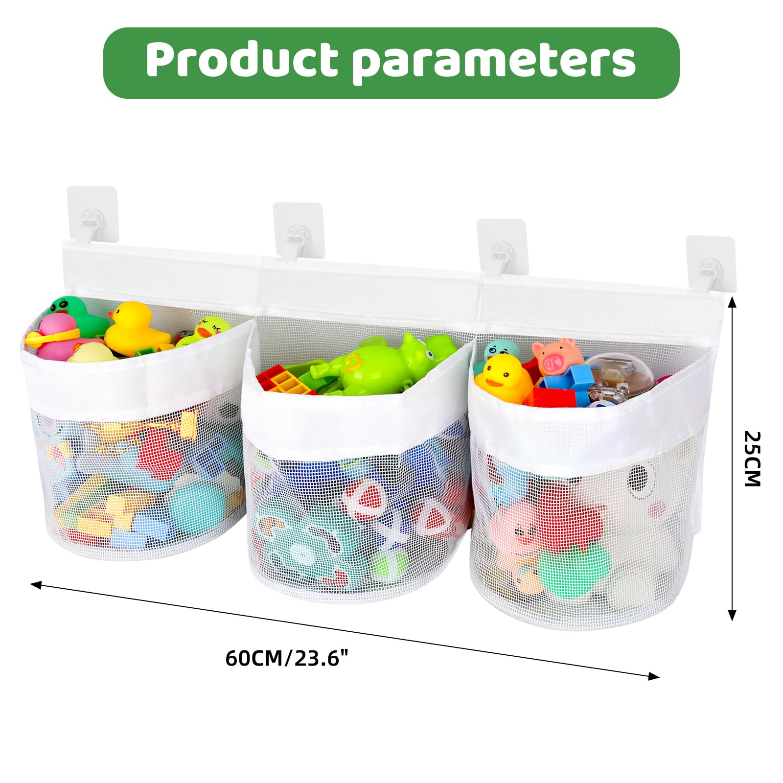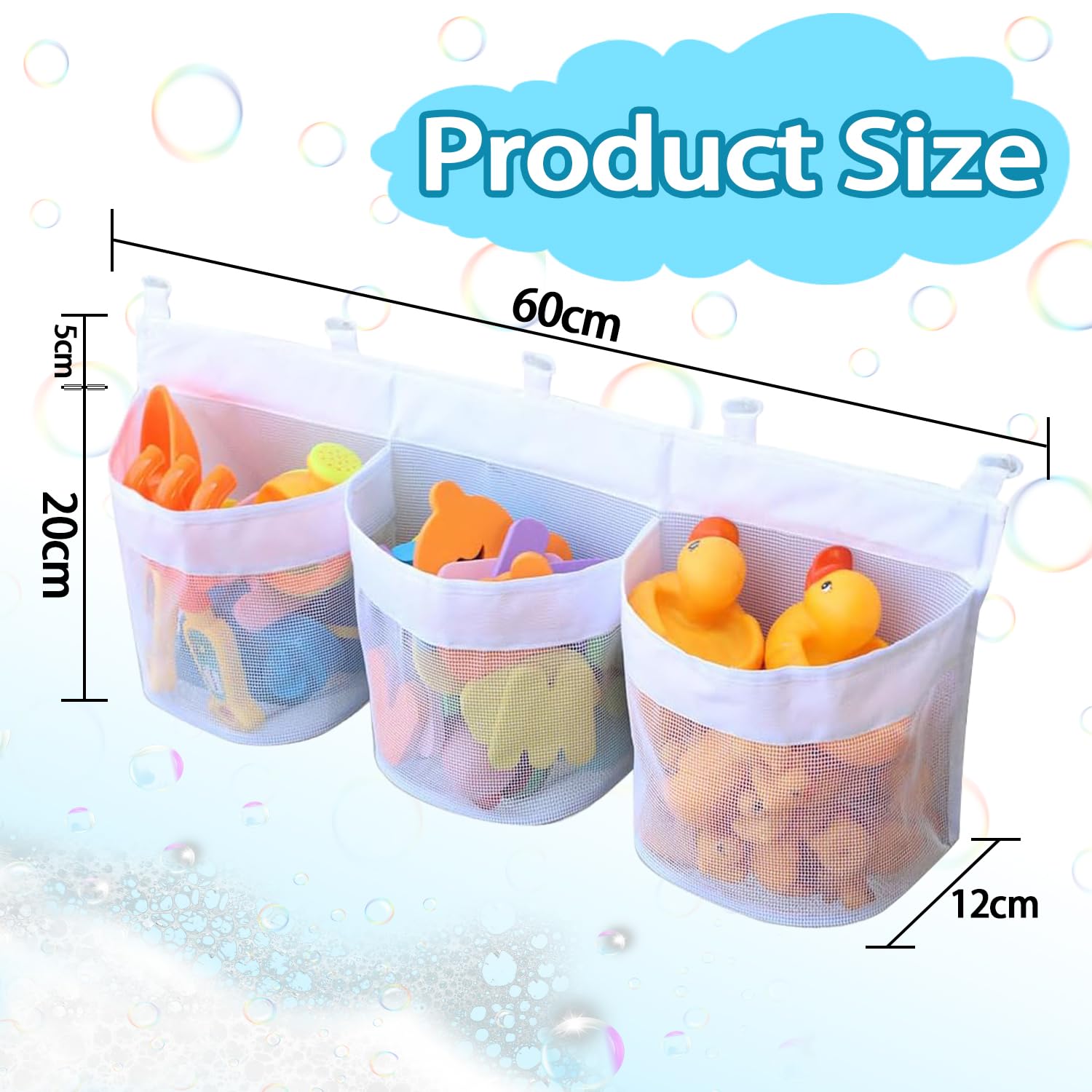 Endlich Ordnung im Badezimmer mit dieser praktischen Spielzeug-Aufbewahrungstasche! Aus robustem Mesh-Material - lässt Wasser super ablaufen und trocknet schnell. Mit 3 Hauptfächern und 2 Seitentaschen - genug Platz für all das Badespielzeug deiner Kids. 4 starke Saugnäpfe - halten bombenfest an Fliesen oder Glas. Kein Bohren nötig - einfach anfeuchten und festdrücken. Größe 63x16cm - geräumig aber nicht zu klobig. Verhindert Schimmelbildung - weil alles gut belüftet wird. Einfach zu reinigen - kurz ausspülen und trocknen lassen. Macht das Badezimmer sofort aufgeräumter. Auch für Schwämme, Waschlappen oder Duschzeug geeignet. Die Saugnäpfe halten wirklich - auch wenn die Tasche voll ist. Farbe Weiß - passt zu jedem Badezimmer. Einfach ein Game-Changer für alle Eltern! Deine Kinder finden ihr Spielzeug sofort wieder - und du hast weniger Chaos. Auch als Geschenk für junge Familien super. Einfach mal ausprobieren - du wirst begeistert sein!
