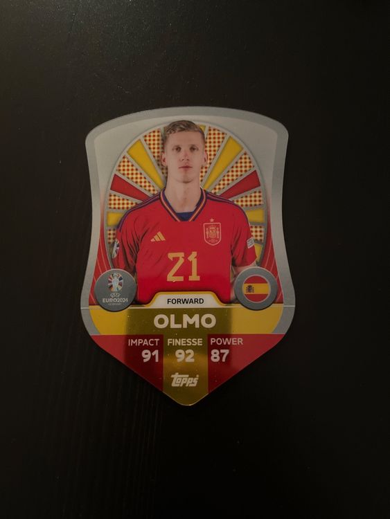 Hey Fußball-Fans! Hier kommt was Besonderes für eure Sammlung: Die offizielle Topps Match Attax Euro 2024 Karte von Dani Olmo mit dem exklusiven Chrome Shield Design! Die SC-8 Ausgabe ist echt was fürs Auge - dieses glänzende Finish macht einfach was her. Perfekt für alle, die ihre Sammlung aufwerten oder einem anderen Fan ein mega Geschenk machen wollen. Ob im Album oder als Einzelstück - mit dieser Limited-Edition-Karte machst du nichts falsch. Die Qualität stimmt, das Design sitzt und sie kommt top geschützt bei dir an. Ideal für Tauschbörsen oder zum Angeben im Freundeskreis! Und falls du noch andere Spieler suchst - schau doch mal in unserem Shop vorbei, da findest du bestimmt noch mehr Schätze für deine Match Attax Kollektion. Viel Spaß damit!