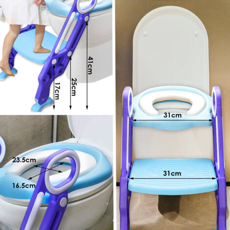 Der perfekte Begleiter für die ersten Toilettengänge deines Kindes! Dieser Toilettensitz ist speziell für die Kleinen designed und macht das Töpfchentraining zum sicheren Erlebnis. Das weiche PU-Polster ist super bequem und schützt die Wirbelsäule. Die rutschfesten Gummi-Stufen geben deinem Kind sicheren Halt und die Höhe ist von 48-52 cm verstellbar. Das spritzresistente Design verhindert, dass Urin daneben geht. Mit den Saugnäpfen an der Unterseite sitzt der Sitz bombenfest auf jeder Toilette. Und nach Gebrauch einfach zusammenklappen - platzsparend und hygienisch. Für Jungen und Mädchen gleichermaßen geeignet und passt auf die meisten Toilettenformen. Ein echter Helfer für die Selbstständigkeit deines Kindes!