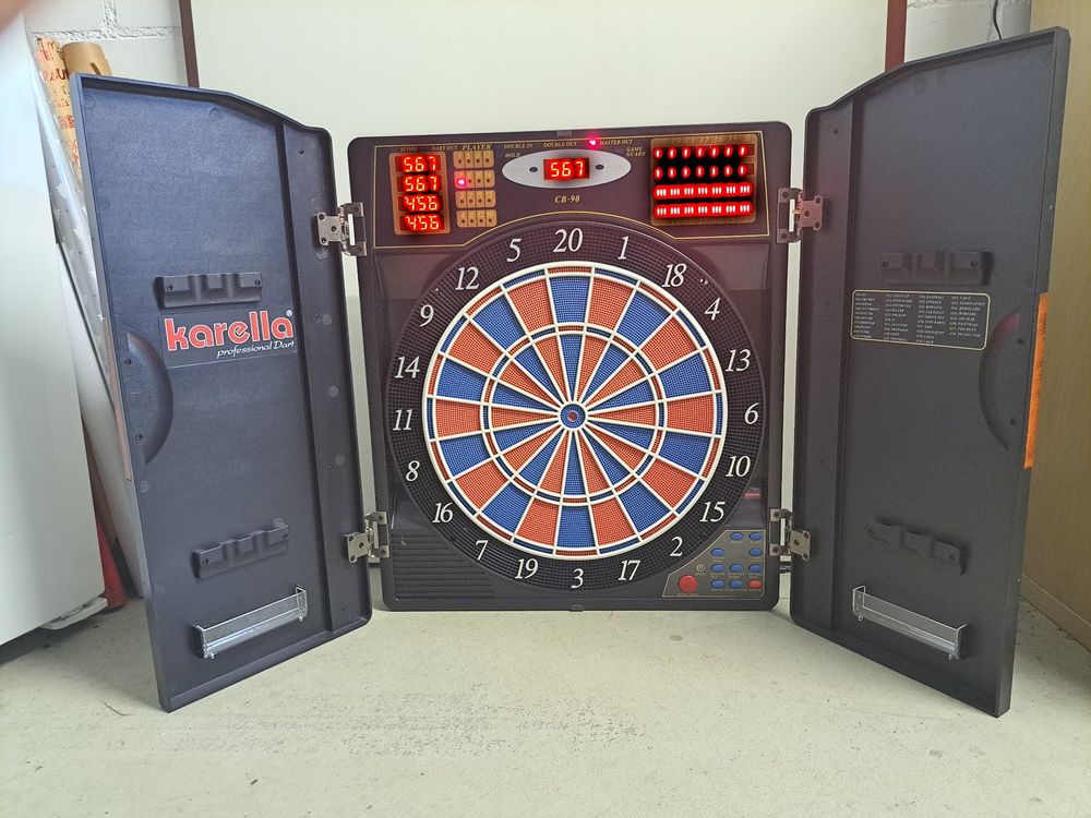 Das Karella Mini Dartboard 'Bulli' bringt Dart-Spaß auf kleinstem Raum! Mit nur 15cm Durchmesser ist es perfekt für den Schreibtisch, die Deko oder unterwegs. Aus echtem gepresstem Sisal gefertigt - wie die großen Profi-Scheiben!\\n\\nIm Set enthalten: 6 Mini-Steeldarts (je 11,5cm und 6g schwer) und ein verstellbarer Metallständer, der bis 23cm Höhe einstellbar ist. Das Board wiegt 1,2kg und steht damit super stabil.\\n\\nPerfekt fürs Büro, die Wohnung oder als Reisespiel. Sieht nicht nur cool aus, sondern macht auch richtig Laune. Ein ideales Geschenk für Dart-Fans und alle, die mal was Anderes ausprobieren wollen. Einfach aufstellen und losdarten!