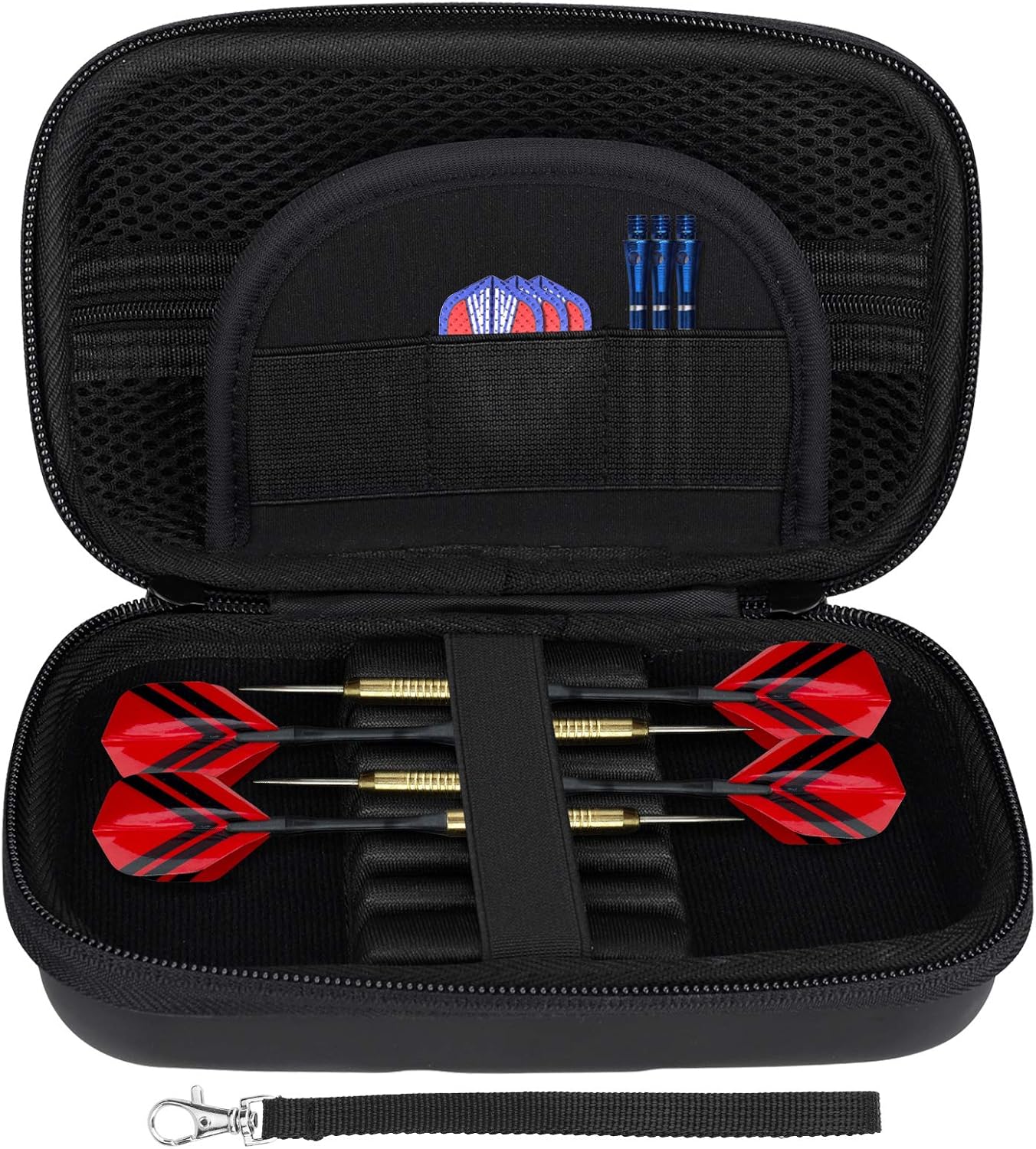 Alles sicher verstaut für deine nächste Dart-Session! Dieses robuste EVA-Etui bietet Platz für 6 Dartpfeile mit Stahlspitzen. Die harte Außenschale schützt deine Pfeile vor Beschädigungen, während die innenliegenden Mesh-Taschen und Gummibänder für Ordnung sorgen. Perfekt für Flights, Schäfte und anderes Zubehör. Mit den Maßen 18x10,5x3,3cm ist die Tasche handlich und passt in jede Sporttasche. Das schwarze Design sieht stylisch aus und das hochwertige Material hält auch intensivem Gebrauch stand. Nie wieder verrutschte oder beschädigte Dartpfeile!