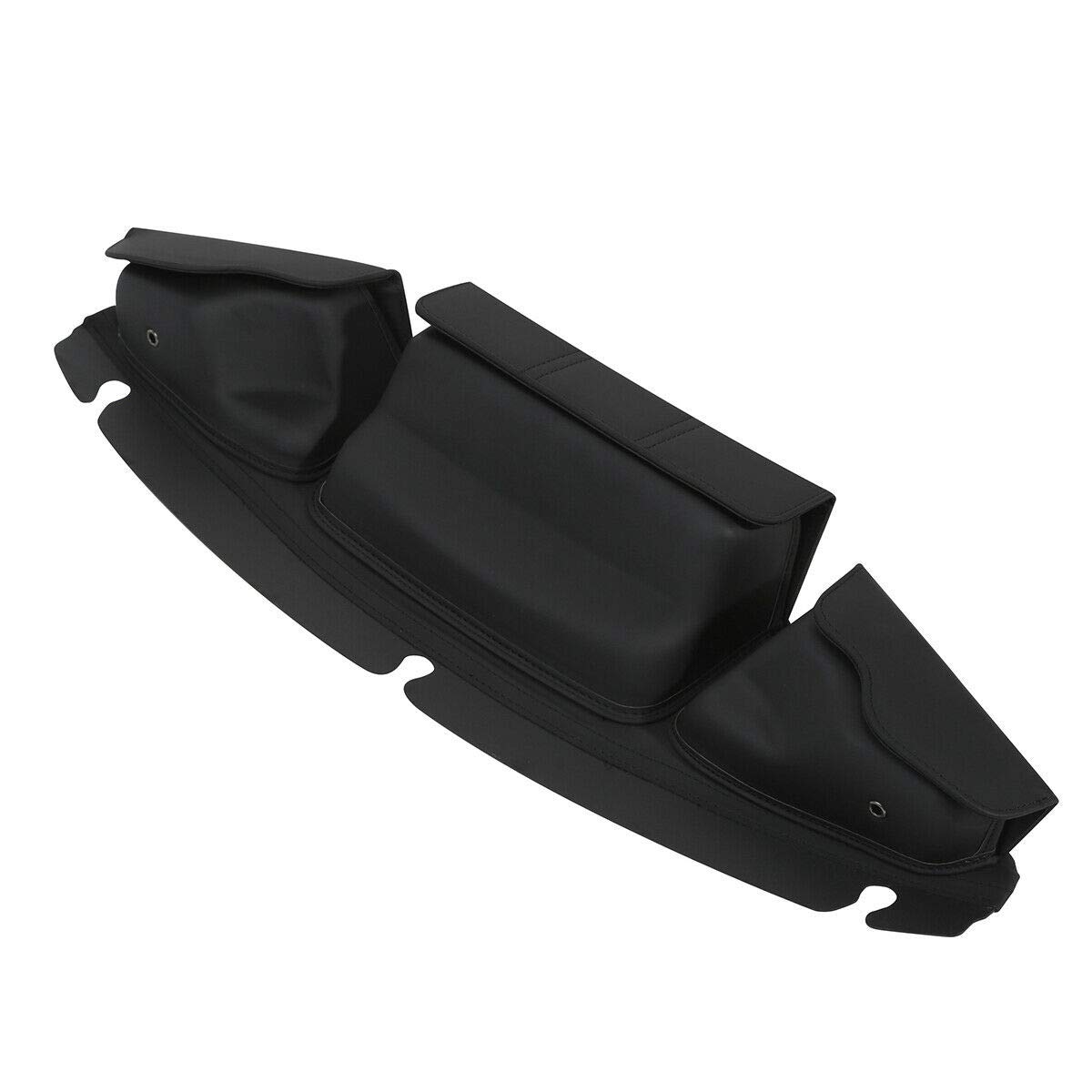 Praktische Windschild-Tasche für deine Harley Electra Glide! Mit drei separaten Fächern mit Magnetverschluss - perfekt für Handy, Geldbeutel, Schlüssel oder andere Kleinigkeiten. Aus hochwertigem Kunstleder und super einfach zu montieren. Maße: 57cm lang, 11cm hoch. Bleibt auch leer in Form - das sieht einfach professionell aus. Die großen Klappen machen den Zugriff mega easy, auch während der Fahrt. Perfekter Begleiter für lange Touren - alles Wichtige griffbereit und sicher verstaut. Passt für Electra Glide Ultra Limited von 2014 bis 2024. Mach deine Harley noch tourentauglicher!