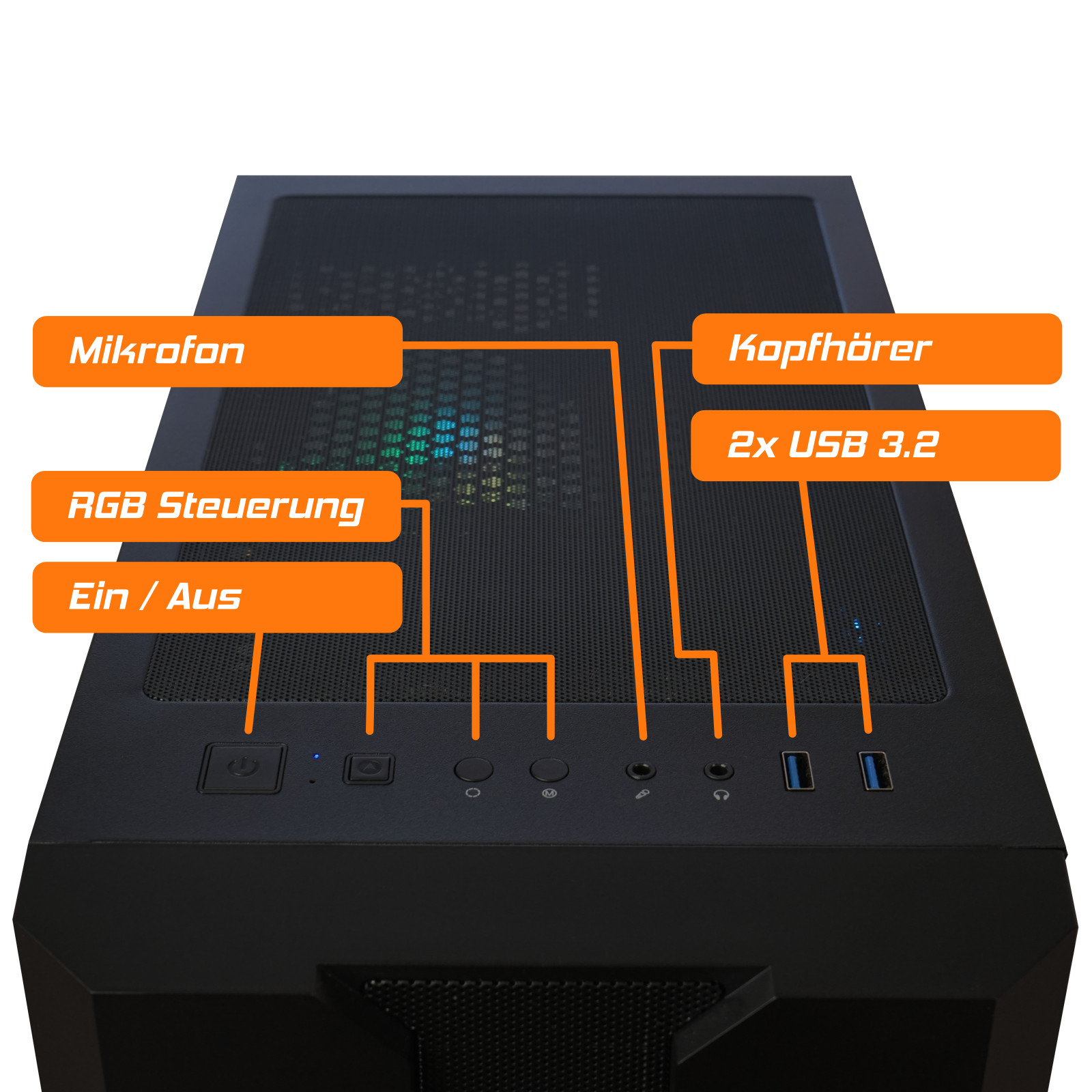 Zocke wie ein Profi mit diesem dcl24 Gaming PC! Der AMD Ryzen 5 5600G mit bis zu 4,4 GHz und AMD Radeon Grafik bringt Spiele wie Fortnite, GTA V und Minecraft richtig gut auf den Bildschirm. Mit 16GB DDR4 RAM und ultraschneller 1000GB NVMe M.2 SSD startest du blitzschnell und lädst ohne Wartezeiten. Windows 11 Pro ist bereits vorinstalliert und alle Treiber sind aktuell. Das schwarze Gehäuse mit RGB-Beleuchtung und sechs LED-Lüftern sieht einfach hammer aus - die Beleuchtung kannst du nach Belieben anpassen. Einfach auspacken, anschließen und loslegen! Der PC kommt vollständig montiert und getestet bei dir an. Seit 2001 baut dcl24 in Deutschland qualitativ hochwertige PCs - da weißt du, was du kriegst. Perfekt für Einsteiger und Casual-Gamer!