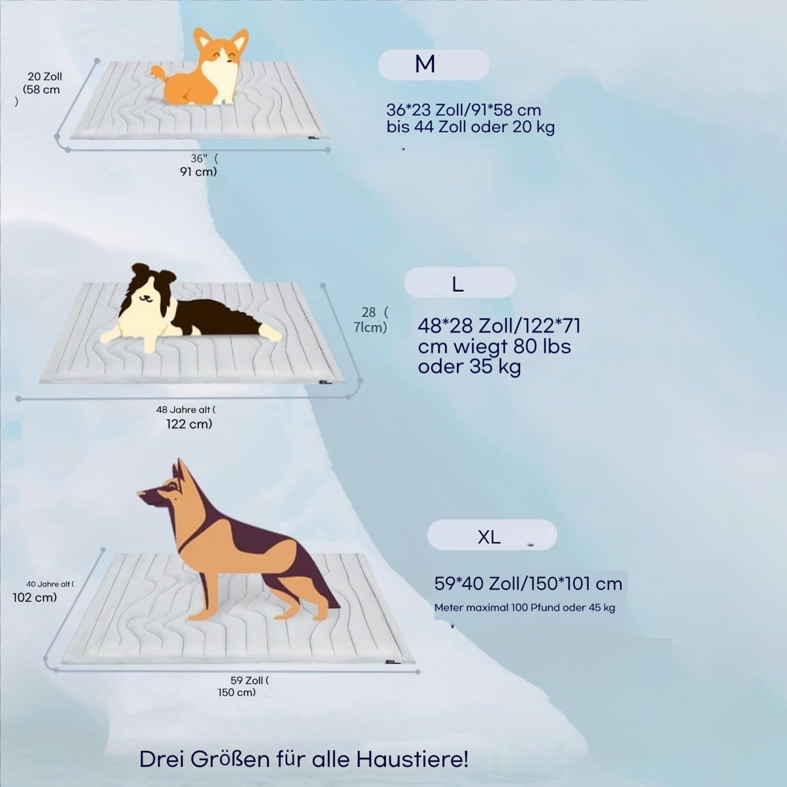 Die innovative Pfotenchill Kühlmatte ist der Retter für heiße Sommertage! Kein Vorkühlen nötig - einfach ausbreiten und sofort wirkt der kühlende Effekt durch die spezielle Technologie, die durch die Berührung deines Hundes aktiviert wird. Senkt die Temperatur um bis zu 5°C und hält über 6 Stunden kühl. Besonders praktisch: Die Matte ist beidseitig verwendbar - im Sommer kühlend, im Winter wärmend. In vier Größen erhältlich: S (bis 8 kg), M (bis 20 kg), L (bis 35 kg) und XL (bis 45 kg). Robustes Material widersteht Krallen und gelegentlichem Knabbern. Perfekt für zu Hause, Auto oder Reisen. Einfach bei 30°C in der Maschine waschbar ohne Wirkungsverlust. Dein Hund wird diese Erfrischung an heißen Tagen lieben!