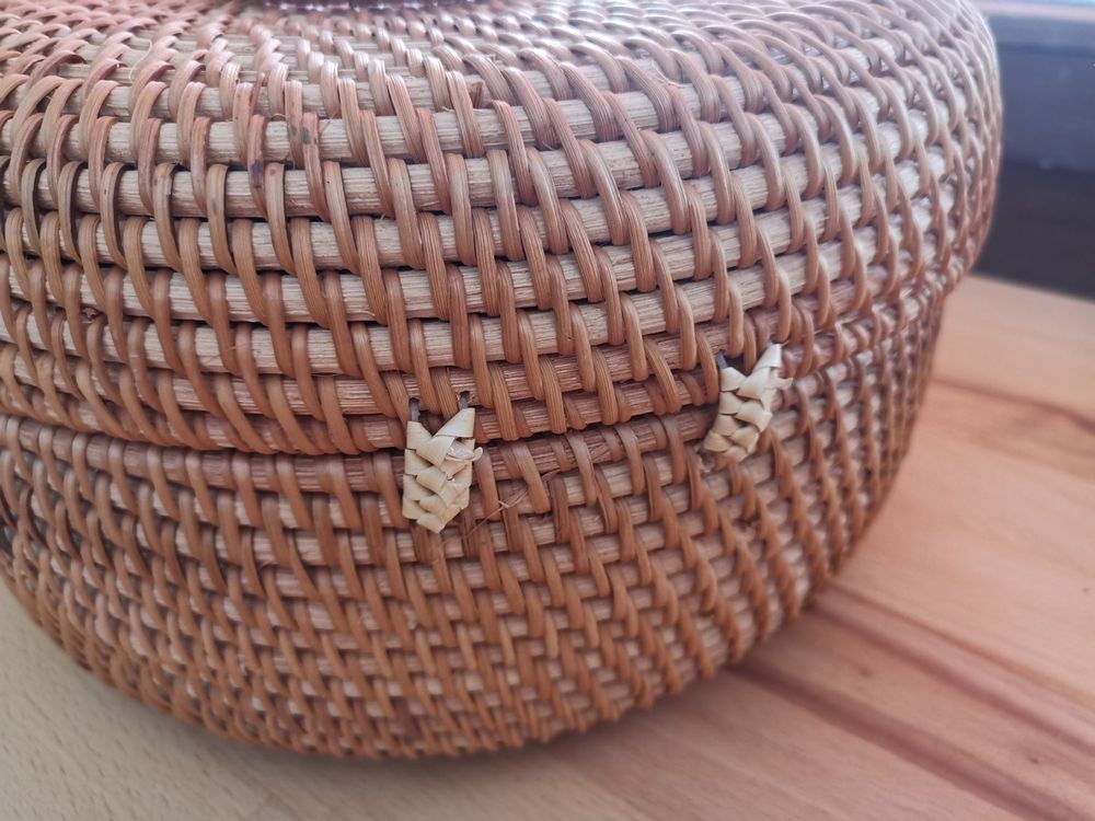 Dieser niedliche Bambuskorb bringt natürlichen Charme in deine Küche! Aus nachhaltigem Bambus geflochten, ist er nicht nur umweltfreundlich, sondern auch super stabil. Der praktische Netzdeckel schützt dein Obst und Gemüse vor lästigen Fruchtfliegen, lässt aber gleichzeitig Luft zirkulieren - so bleibt alles länger frisch! Mit 42cm Durchmesser findest du darin problemlos Äpfel, Bananen, Tomaten oder auch Brot und Brötchen Platz. Die Höhe von 26cm gibt dir genug Stauraum, ohne dass es unhandlich wird. Perfekt für die Küche, aber auch total hübsch als Deko-Element im Wohnzimmer oder als Servierkorb beim Picknick! Der Deckel lässt sich einfach zur Seite schieben, wenn du was entnehmen möchtest. Einfach ab und zu mit einem feuchten Tuch abwischen - schon ist er wieder blitzblank. Natur pur für dein Zuhause!
