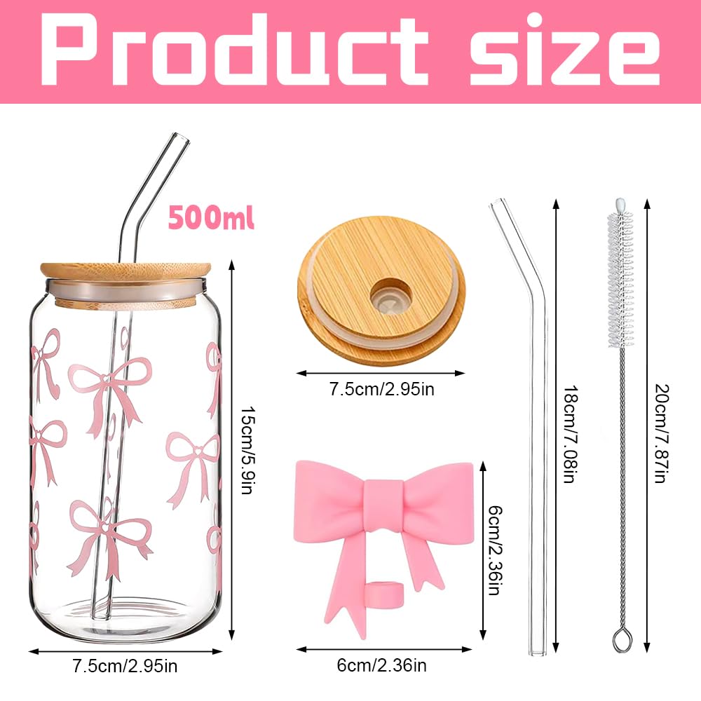 Dieser niedliche Glasbecher ist einfach umwerfend schön! Mit der zarten rosa Schleife und dem eleganten Design passt er perfekt zum 'Clean Girl Aesthetic' Trend. Aus hochwertigem Borosilikatglas (16x7cm, 500ml Fassungsvermögen) - spülmaschinengeeignet und kratzfest. Im Set enthalten: Der wunderschöne Becher, ein passender Bambus-Deckel, ein Glas-Strohhalm (18cm) und eine Strohhalm-Abdeckung. Perfekt für Smoothies, Eiskaffee, Cocktails oder einfach nur Wasser - damit trinkt sich alles gleich viel stylischer! Die glatten Innenwände machen die Reinigung super einfach, der Deckel verhindert Verschütten. Ein absoluter Hingucker auf jedem Tisch und ein traumhaftes Geschenk für alle, die auf schöne Dinge stehen. Ob für sich selbst oder als Mitbringsel - dieser Becher begeistert garantiert!
