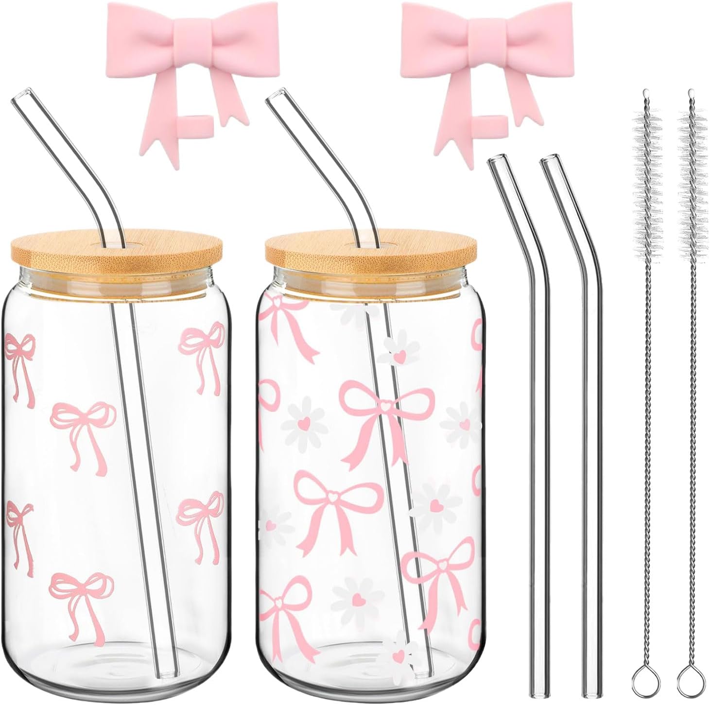 Dieser süße Glasbecher von XINGNA ist einfach nur niedlich! Mit der rosa Schleife sieht er nicht nur hübsch aus, sondern ist auch super praktisch. Im Set dabei: Der 16oz (500ml) Glasbecher, ein passender Deckel, ein wiederverwendbarer Strohhalm, plus Tassenbürste und Strohbürste für die Reinigung. Perfekt für deinen Bubble Tea, Eiskaffee, Smoothies, Cocktails oder einfach nur für Wasser - damit trinkt sich alles gleich viel besser! Das hochwertige Glas ist robust und die elegante Formgebung macht was her. Allerdings: Nur Handwäsche, bitte nicht in die Spülmaschine oder Mikrowelle! Die glatte Innenseite ist leicht zu reinigen und hinterlässt keine Getränkereste. Der Deckel und Strohhalm verhindern Verschütten und halten dein Getränk frisch. Ob für zu Hause, Partys oder unterwegs - dieser Becher verleiht deinem Alltag stylisches Flair. Ein tolles Geschenk für alle, die hübsche Trinkgefäße lieben - oder einfach für dich selbst!