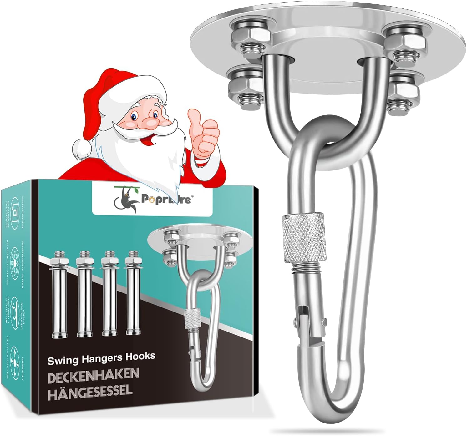 Willst du nen Boxsack, Hängesessel oder Turnringe aufhängen? Dieser HISKA Deckenhaken ist dein bester Freund! Hält bis zu 300kg - also wirklich schwere Sachen. Aus 100% rostfreiem Edelstahl, sowohl für innen als auch außen geeignet. Mit 360 Grad Drehwirbel, damit sich alles frei bewegen kann. Die Überwurfrosette versteckt die Schrauben - sieht total clean aus. Verschiedene Befestigungs-Sets verfügbar: Für Beton, Holz oder Mauerwerk. Deutsche Qualität, einfach zu montieren. Endlich sicher aufhängen was du willst!