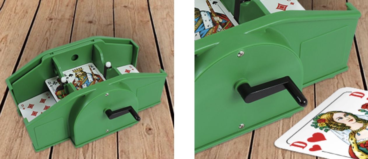 Endlich perfekt gemischte Karten für deine Spieleabende! Dieser manuelle Kartenmischer von Idezek macht's möglich - einfach die Kurbel drehen und schon werden bis zu zwei Decks gründlich durchgemischt. Kein lästiges Handmischen mehr, das die Karten verbiegt oder beschädigt. Aus robustem ABS-Material gebaut, hält der Mischer ewig und ist superleicht zu bedienen. Perfekt für Poker, Blackjack, Rommé, Texas Hold'em oder gemütliche Familienspiele. Das Beste: Er braucht keine Batterien oder Strom, du kannst ihn also überall mitnehmen - ob zu Hause, auf Reisen oder bei Freunden. Mit ca. 23x11x11 cm ist er kompakt genug für unterwegs, aber trotzdem groß genug für Standard-Spielkarten. Deine Karten bleiben geschützt vor Knicken und Verschleiß, und du bestimmst selbst die Mischgeschwindigkeit. Ein Muss für jeden Spieleabend - damit es keine Diskussionen mehr über 'ungemischt' gibt!