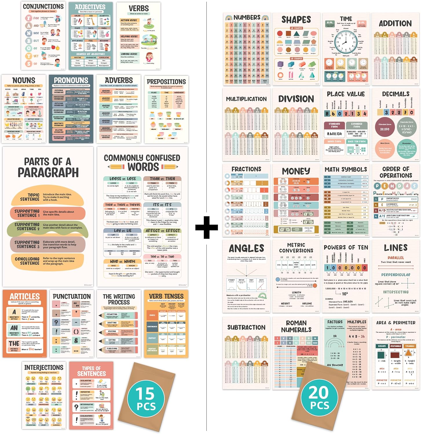 Lehrer und Eltern, diese Decorably Poster sind perfekt für den Englisch-Unterricht! 15 bunte Poster im Format 27,9 x 43,2 cm, die alle wichtigen Grammatik-Themen abdecken. Von Substantiven über Verben bis zu Adjektiven und Präpositionen - alles ist dabei! Gedruckt auf hochwertigem 250g/m² Papier, sind die Poster robust und langlebig. Die klaren Texte und ansprechenden Designs wecken sofort die Aufmerksamkeit der Schüler. Perfekt für Mittel- und Grundschulen, aber auch für zu Hause zum Lernen. Einfach an die Wand hängen und schon wird Grammatik lernen zum Kinderspiel! Die Poster helfen dabei, die englische Sprache visuell zu verstehen und zu behalten. Ob für ESL-Unterricht, Sprachkurse oder einfach zur Verschönerung des Klassenzimmers - diese Poster machen immer eine gute Figur. Einfach bestellen und sich über motivierte Schüler und schöne Klassenzimmer freuen! Qualität, die im Unterrichts-Alltag besteht.