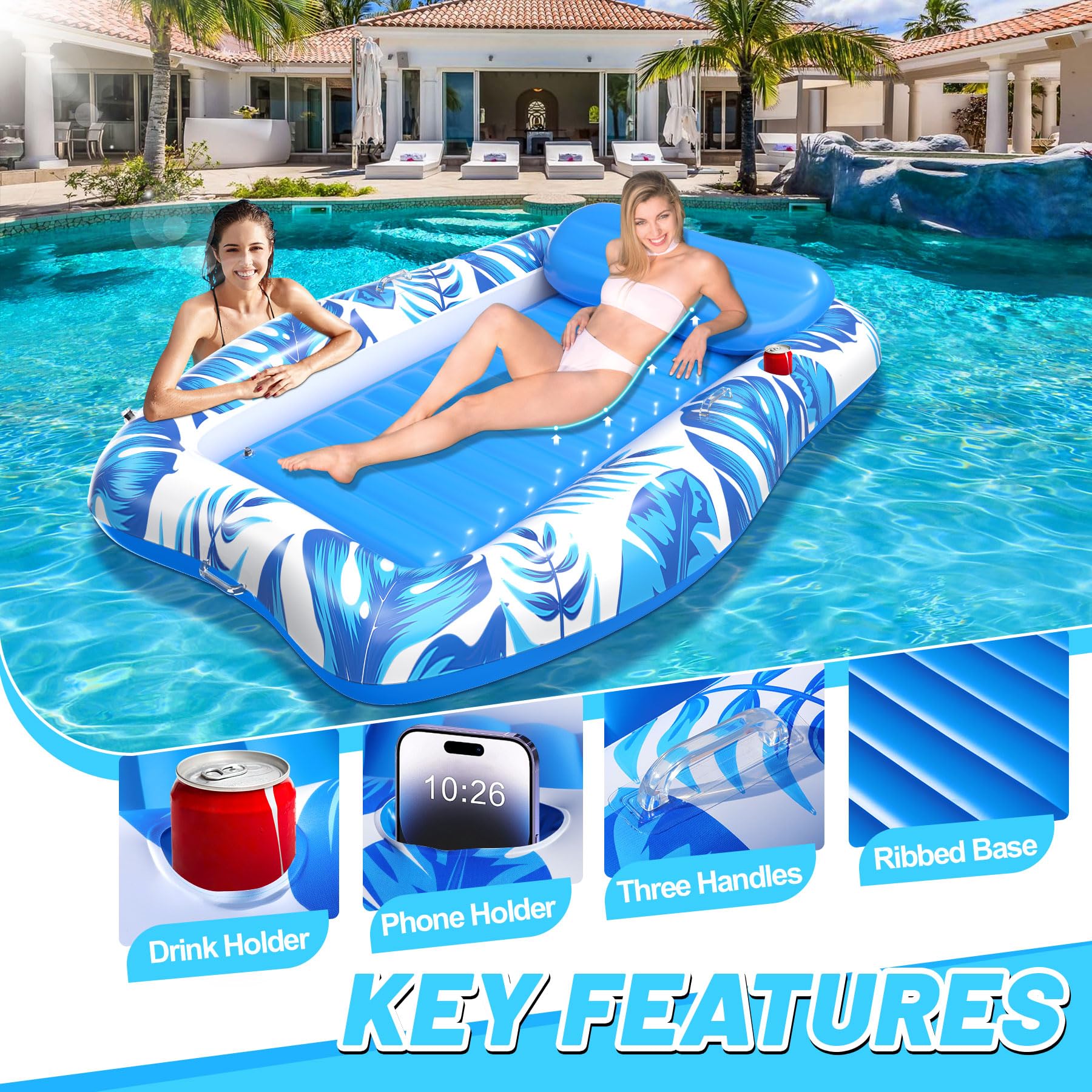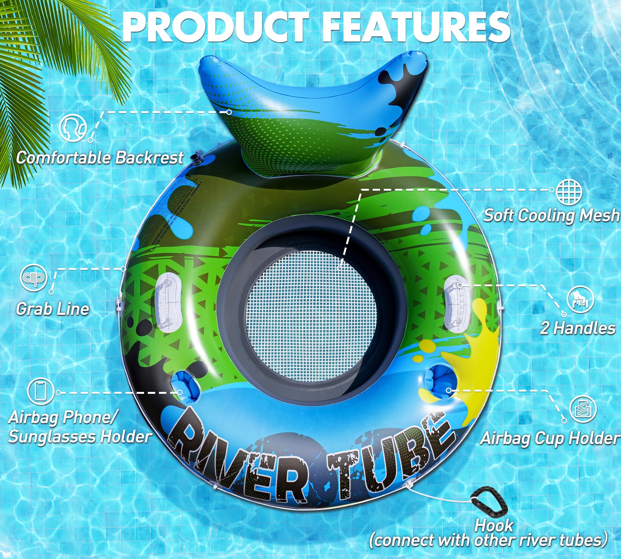Boah, diese Luftmatratze ist ja der absolute Hammer für den Sommer! Mit stolzen 127 cm Durchmesser und ner Tragkraft von bis zu 200 kg - da können auch kräftige Erwachsene entspannt drauf chillen. Das coole Netzgewebe ist super angenehm und kühlend. Und praktisch: Mit Getränkehalter für dein Bier oder Cocktail, plus nem Handyhalter damit du keine wichtigen Anrufe verpasst. Die Rückenlehne ist ergonomisch geformt, fühlt sich an wie ne richtige Couch auf dem Wasser! Aus extra dickem, stichfestem Material gemacht - hält auch mal nen Ast aus. Mit Boston-Ventil zum einfachen Aufblasen. Und das Beste: Du kannst mehrere Matratzen mit den Haken verbinden und mit deinen Freunden ne ganze Floß-Party machen. Perfekt für Pool, See, Fluss oder Meer - einfach aufblasen und ab geht's!