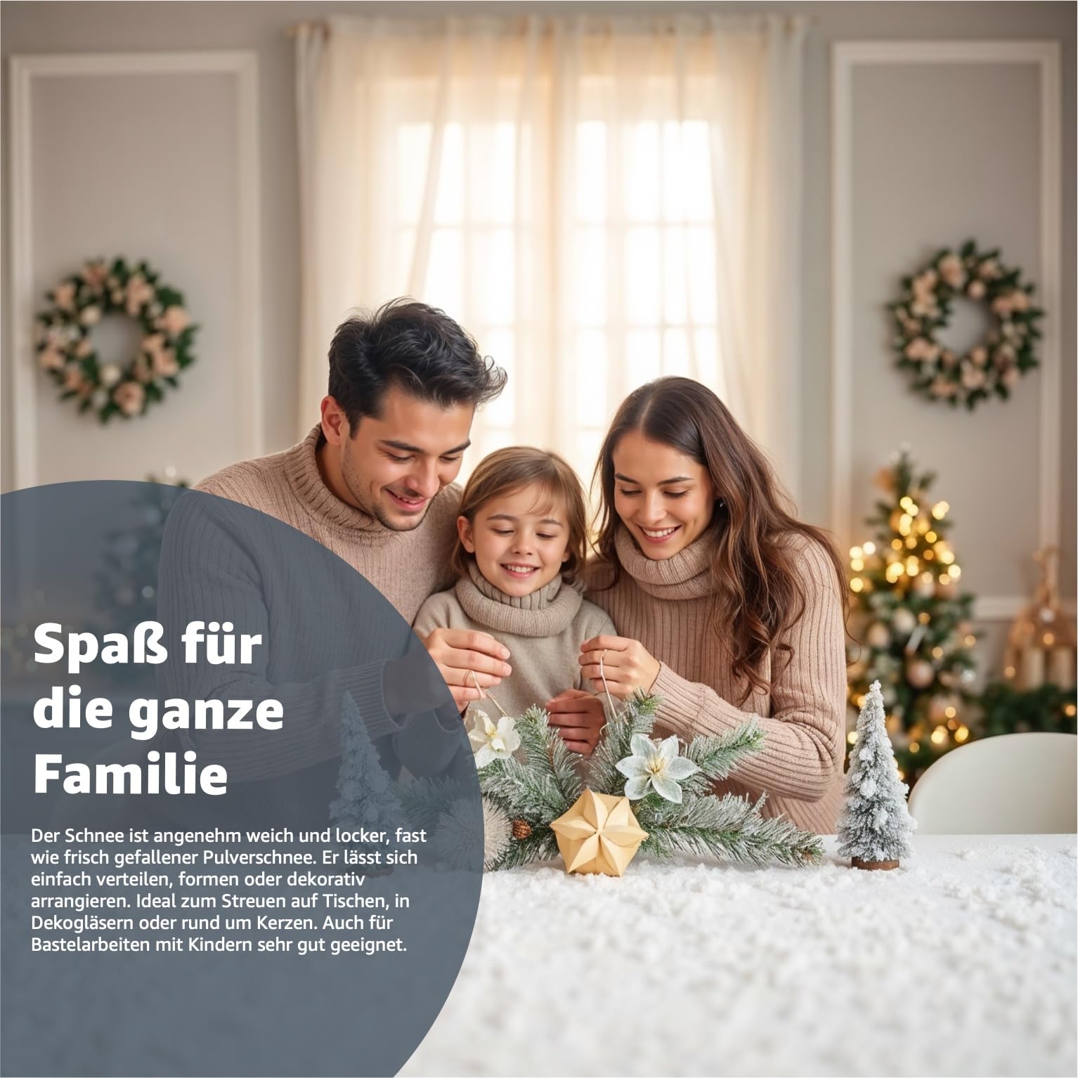 Oh, wie winterlich! Mit diesem Kunstschnee zauberst du im Handumdrehen eine märchenhafte Weihnachtsatmosphäre. Die 200g feines, weißes Schneepulver sind super einfach zu verwenden - einfach auf deine Basteleien streuen und schon hast du eine traumhafte Winterlandschaft. Ob für Weihnachtsdörfer, Lebkuchenhäuser, Schneekugeln oder einfach so zum Dekorieren von Bäumen und Kränzen - dieser Schnee macht alles sofort festlich. Du brauchst kein Wasser oder irgendwas - einfach aus der Packung nehmen und verteilen. Das Material ist leicht und wiederverwendbar, sieht aber total naturgetreu aus. Perfekt für Bastelstunden mit Kindern oder um das eigene Zuhause in ein Winterwunderland zu verwandeln. Einfach genial für die Weihnachtszeit - damit wird jede Dekoration zum echten Hingucker! Hol dir den Zauber des Winters ins Haus - ganz ohne Kälte und Nass!