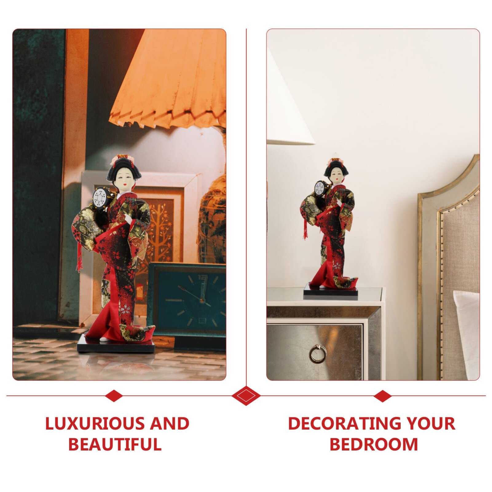 Bring japanisches Flair in dein Zuhause! Diese wunderschöne Geisha-Figur im traditionellen Kimono ist ein echter Hingucker für jede Vitrine oder Regal. Mit 27cm Höhe ist sie groß genug, um Wirkung zu zeigen, aber nicht zu aufdringlich. Aus hochwertigem Harz, Schaum, Holz und Stoff handgefertigt, überzeugt sie durch liebevolle Details. Die Kopfbedeckungsfarben können variieren - das macht jede Figur einzigartig. Perfekt fürs Wohnzimmer, Schlafzimmer, Büro oder sogar Sushi-Bars. Ein tolles Geschenk für Japan-Fans oder einfach für dich selbst, um deinem Zuhause einen asiatischen Touch zu verleihen. Einfach hinstellen und an der fernöstlichen Ästhetik erfreuen!