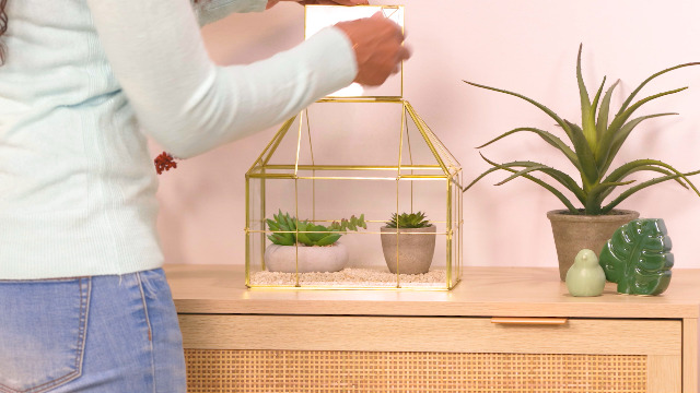 Mit der Türöffnung kriegst du super Luft hin und kannst easy deine Pflanzen pflegen. Noch cooler: Du kannst es mit Steinchen oder Mini-Figuren dekorieren - wie nen kleinen Feengarten. Bring grünes Leben in deine Bude - damit wird jeder Raum sofort gemütlicher!