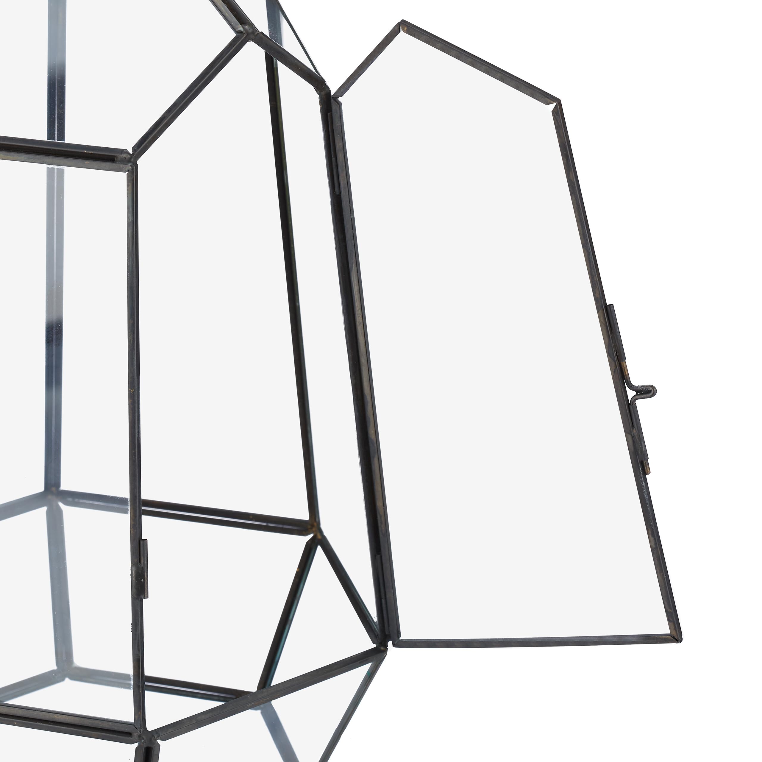 Boah, dieses Pflanzenterrarium ist ja mal der Hammer! Das geometrische Design in Schwarz mit Kupferrahmen sieht einfach mega stylisch aus. Perfekt für deine Sukkulenten, Moos oder Luftpflanzen.