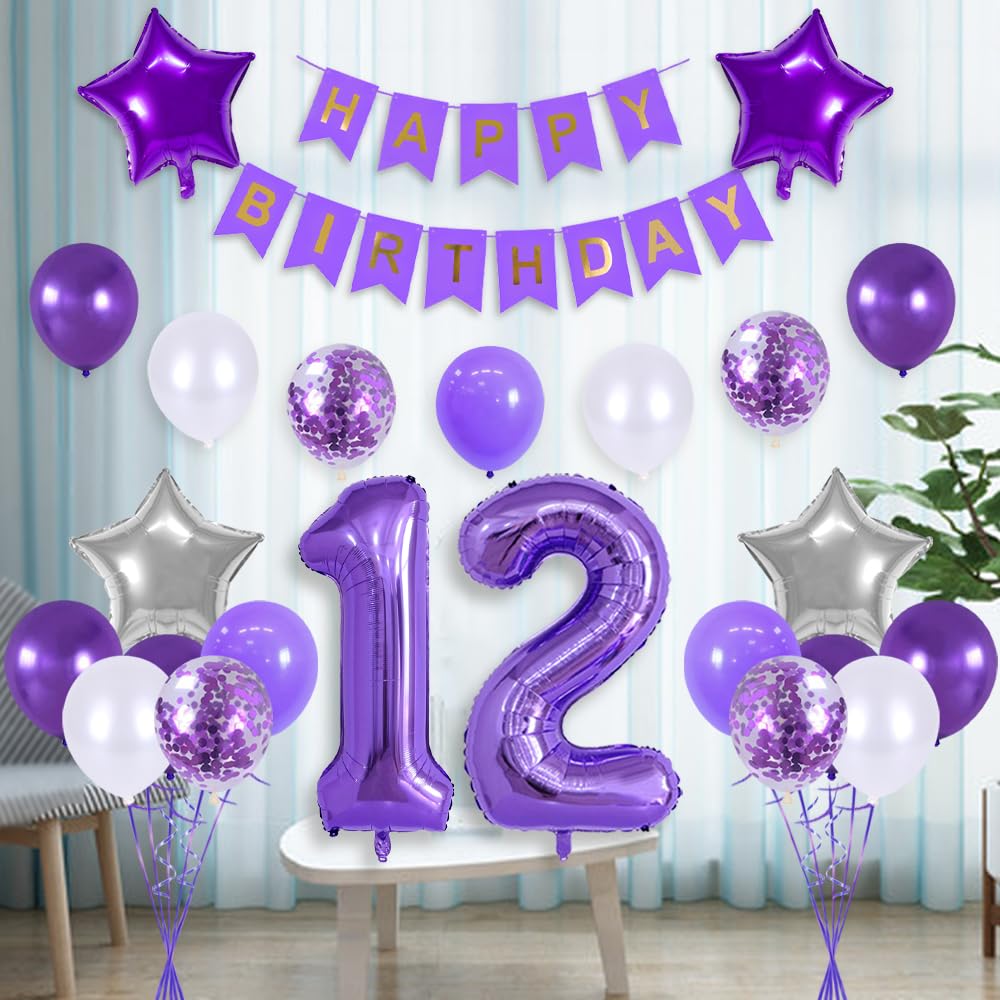 Planst du eine mega Geburtstagsparty für eine 12-jährige? Dieses lila-weiße Deko-Set hat alles, was du brauchst! Enthalten sind: ein riesiger 32-Zoll '12' Folienballon, 'Happy Birthday' Girlande, lila und weiße Latexballons, Konfetti-Ballons, Stern-Folienballons und süße Tortendeko mit Herzen und Sternen. Alle Ballons sind hochwertig verarbeitet und halten lange - ob mit Helium oder Luft gefüllt. Perfekt für drinnen und draußen: Dekoriere Wände, Decken, Türen oder erstelle einen tollen Fotohintergrund. Das Beste: Du musst nicht mehr einzeln einkaufen gehen, alles ist bereits im Set enthalten! So sparst du Zeit, Geld und Nerven. Bei Fragen einfach eine E-Mail schreiben - der Kundenservice hilft gerne weiter!