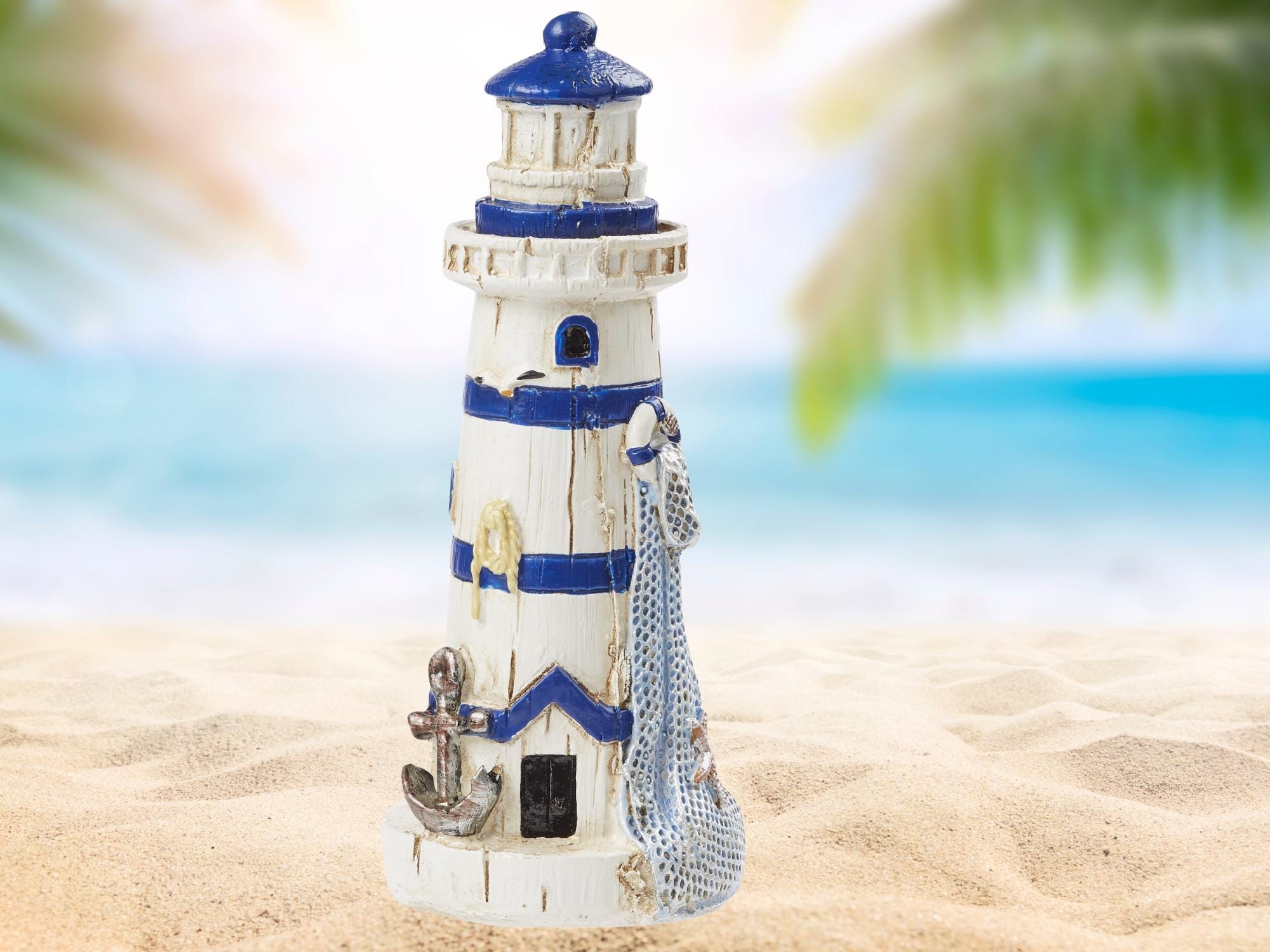 Handbemalter Leuchtturm Deko - Maritime Figur Blau-Weiß 13,5cm Für Zuhause
