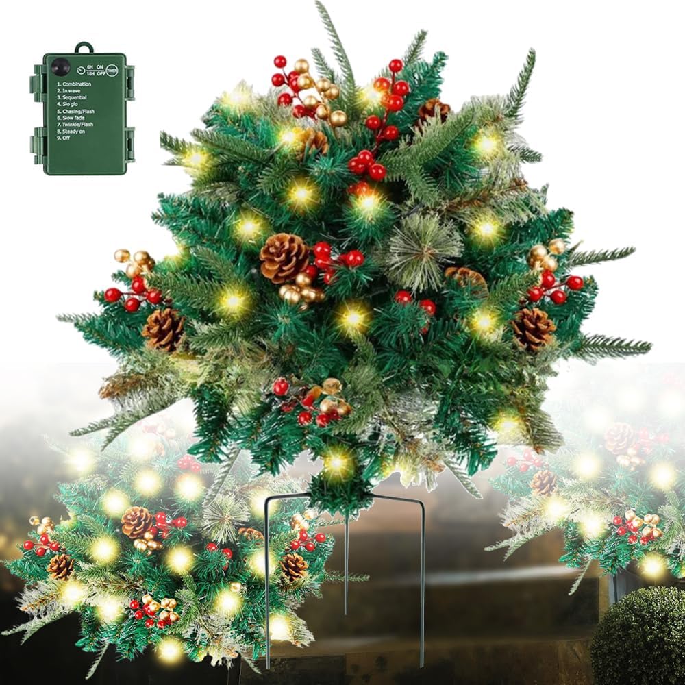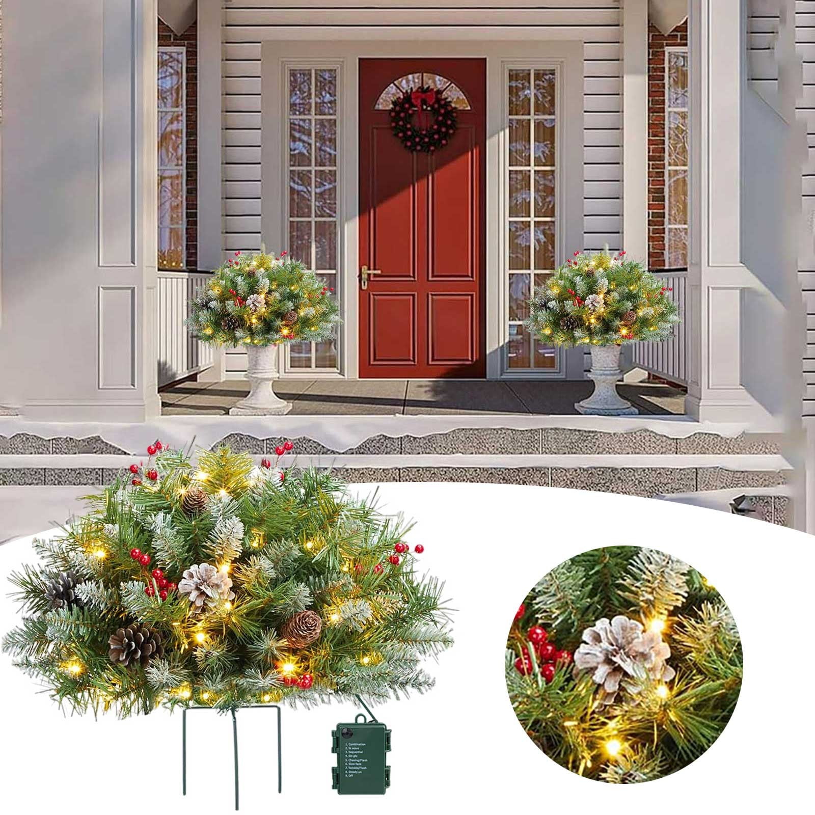 Bring weihnachtlichen Glanz in deinen Garten! Dieser bezaubernde Weihnachtsbaum mit Lichterkette verwandelt deine Terrasse, den Vorgarten oder den Balkon in eine festliche Winterlandschaft. Mit 40x40x45cm ist er der perfekte Blickfang, ohne zu viel Platz wegzunehmen. Das beste: Er läuft mit 2 AAA-Batterien - keine lästigen Kabel und du kannst ihn überall hinstellen! Der stabile Dreibein-Ständer sorgt dafür, dass der Baum auch bei Wind und Wetter sicher steht. Aus robustem ABS, Schaum und Kiefernadeln gefertigt, hält er selbst winterlichen Bedingungen stand. Ob als stimmungsvolle Dekoration für die Weihnachtsfeier, als willkommener Gruß für Gäste oder einfach als täglicher Vorfreude-Bringer - dieser leuchtende Baum macht einfach gute Laune. Einfach aufstellen, Batterien rein und schon strahlt dein Zuhause in festlichem Glanz!