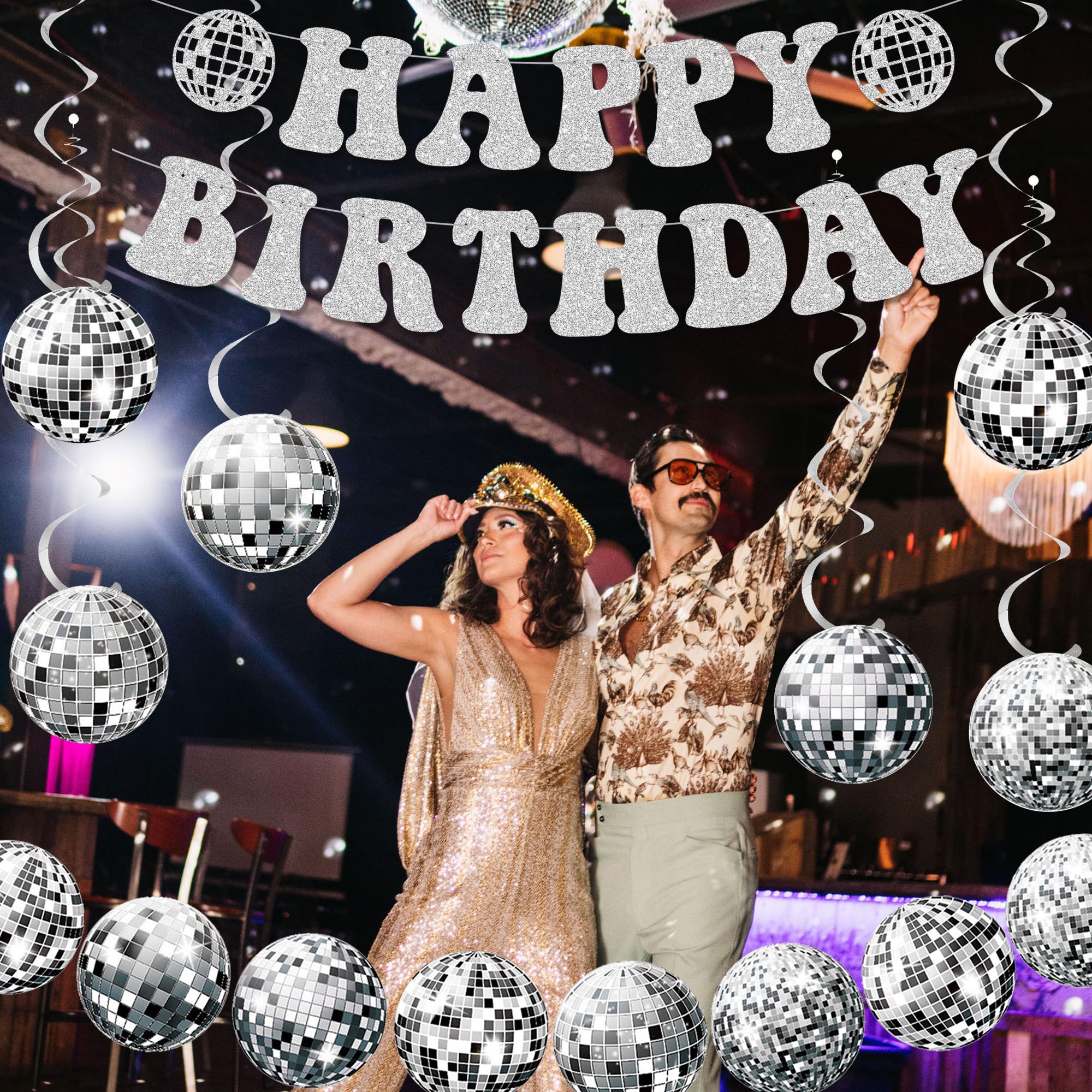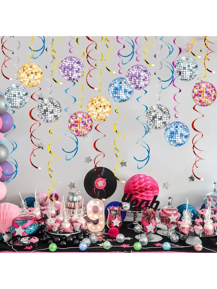 • 70er Disco Deko Set | 24-teilige Discokugel Girlande Mit Banner