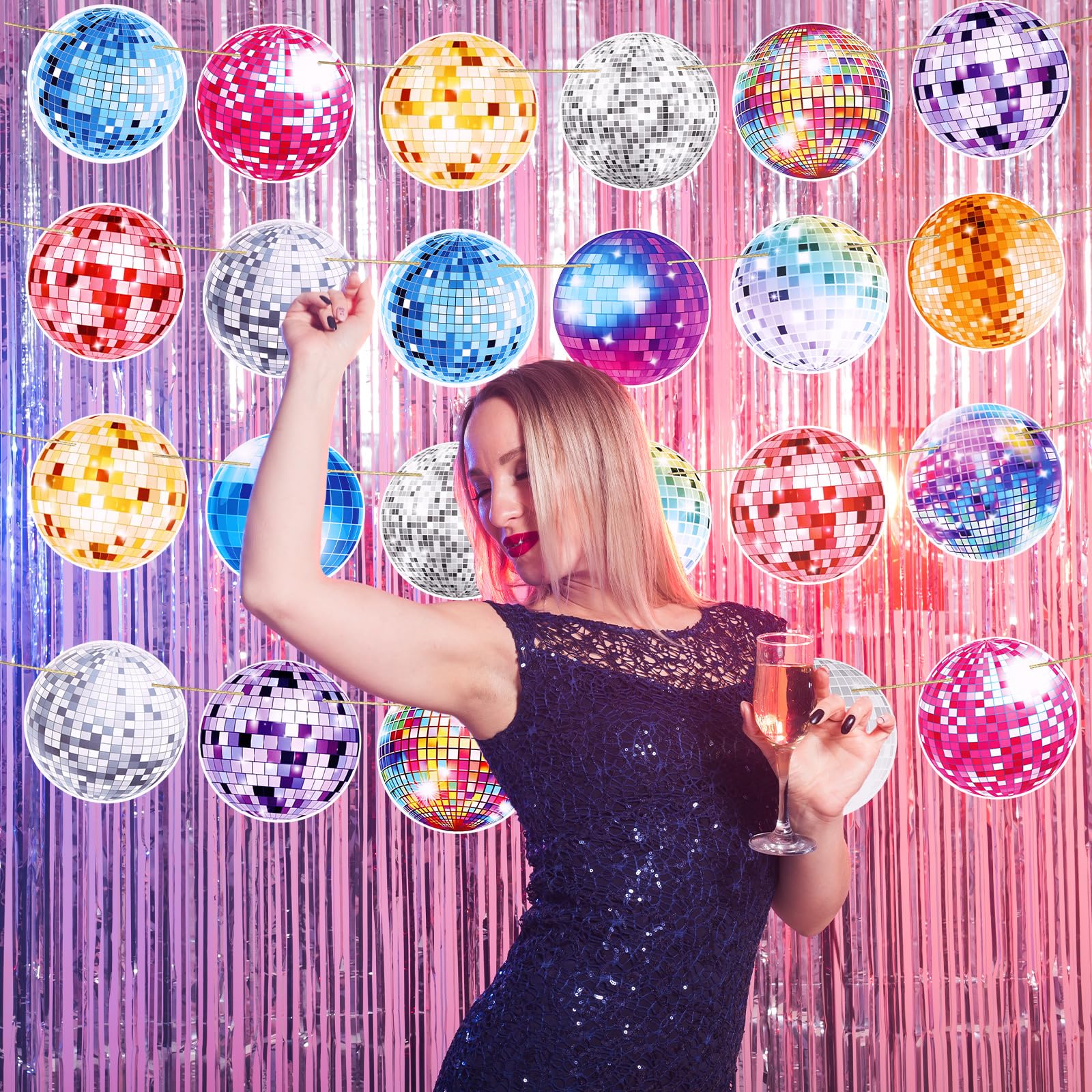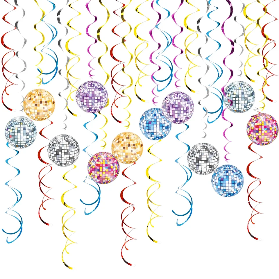 70er Disco Deko Set | 24-teilige Discokugel Girlande Mit Banner
