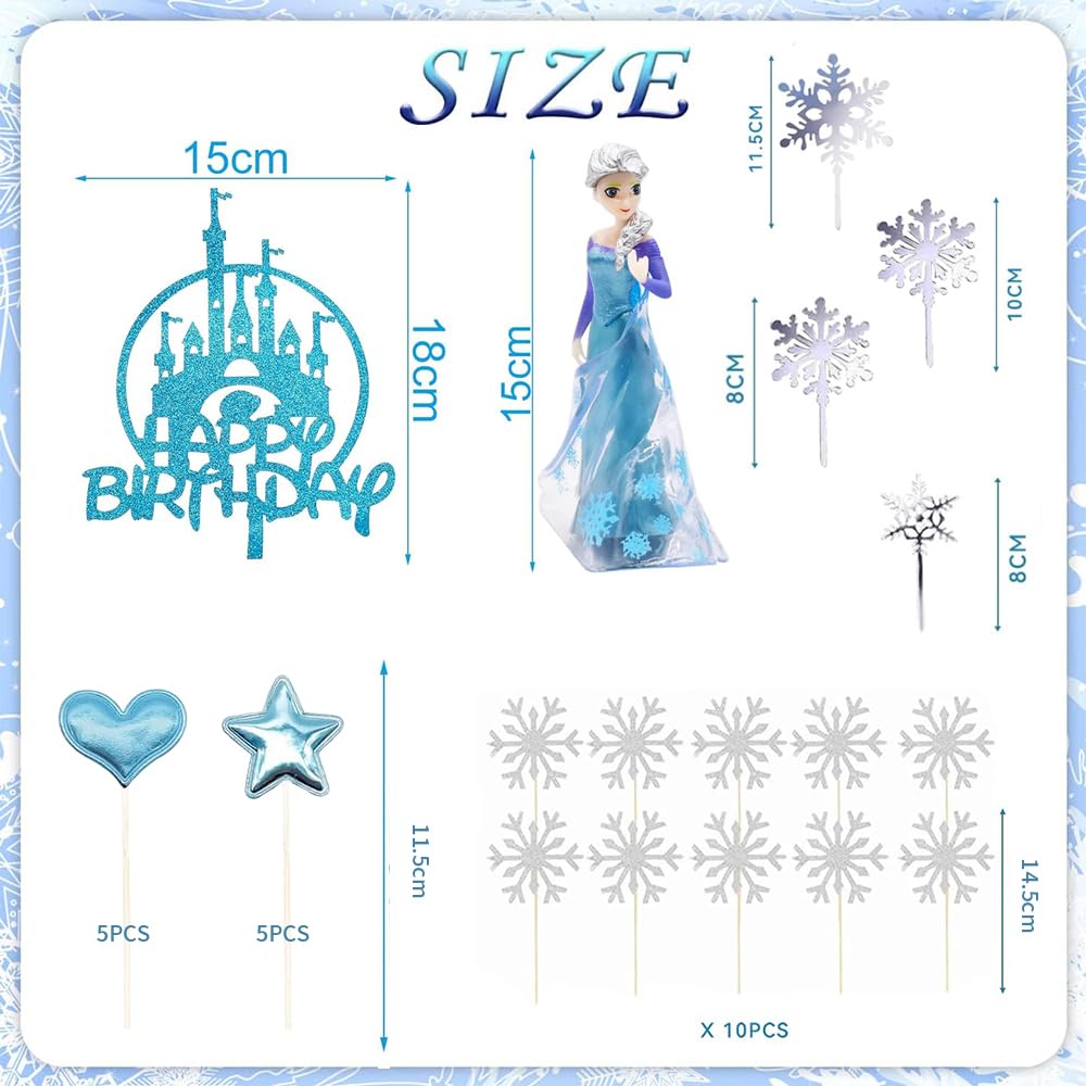 Verwandle die Geburtstagstorte deiner kleinen Prinzessin in ein magisches Eiskönigin-Meisterwerk! Dieses 39-teilige Set enthält alles für den perfekten Elsa-Kuchen: 1 Elsa-Figur, glitzernde Schneeflocken, Herzen, Kugeln und ein 'Happy Birthday'-Schild. Aus sicherem PVC und Papier, ungiftig und geruchlos. Die glitzernden Elemente reflektieren das Licht wunderschön. Perfekt für Kuchen, Cupcakes oder als Tischdeko. Deine Tochter wird vor Freude strahlen! Einfach aufstecken und die magische Party kann beginnen. Auch super für Kindergarten-Feste oder Mottopartys.