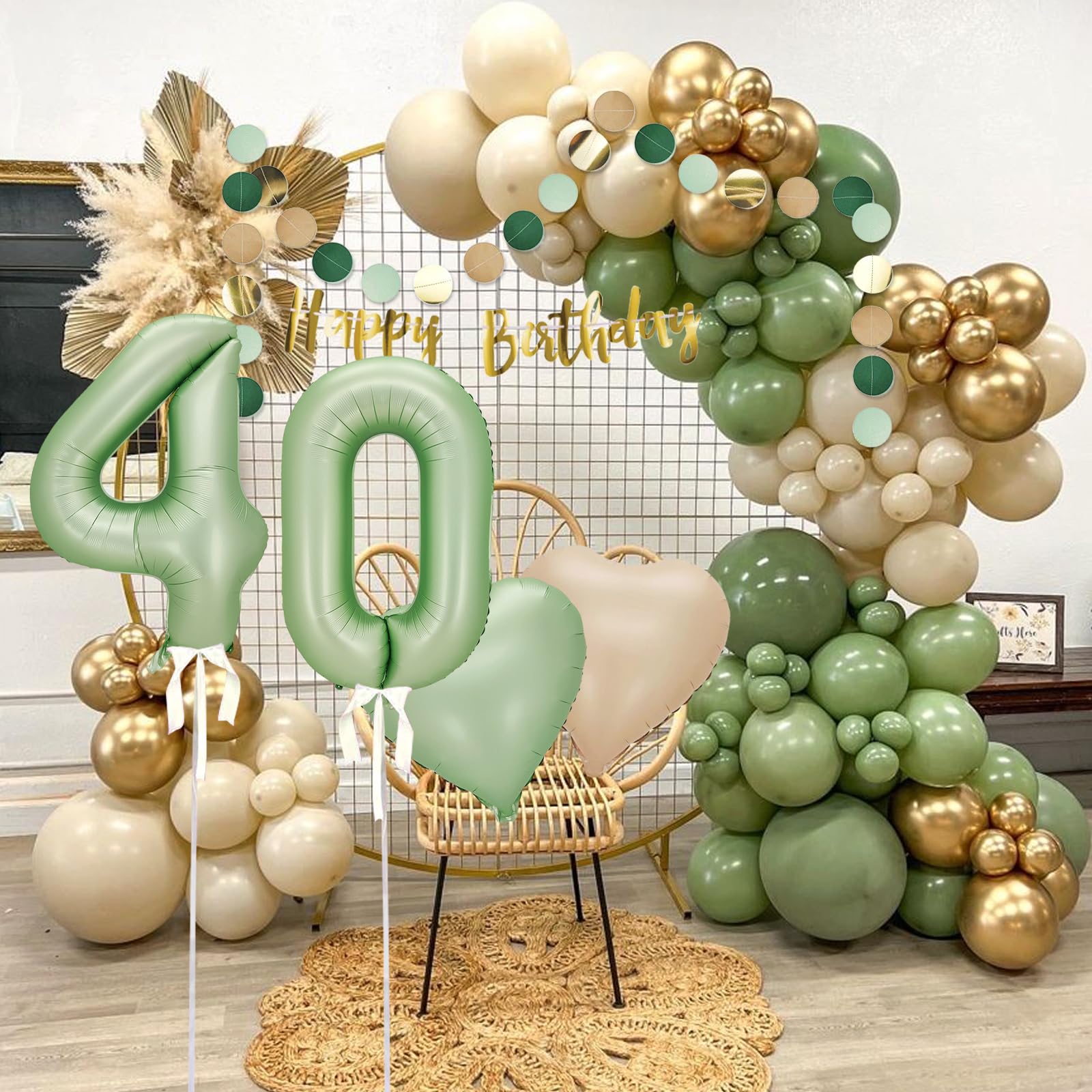Zum 53. Geburtstag wird richtig was geboten! Dieses komplette Deko-Set in stylischem Olivgrün mit Gold-Akzenten hat alles was du für ne coole Party brauchst. Enthalten sind: ein riesiger 32 Zoll Folienballon mit '53', ne Happy Birthday Girlande, 7 weiße Latexballons, 11 olivgrüne Latexballons, 4 Konfetti-Ballons, 2 Stern-Folienballons, ein Cake Topper für die Torte und Bänder zum Aufhängen. Einfach mit Helium befüllen und sie schweben - mit normaler Luft bleiben sie am Boden. Super einfach zu dekorieren - an Decke, Wand oder als Tischdekoration. Spart dir Zeit und Geld weil alles dabei ist. Die Ballons sind aus hochwertigem Latex und Aluminium, ungiftig und sicher. Damit wird die 53. Geburtstagsfeier garantiert unvergesslich! Einfach aufblasen, aufhängen und die Party kann starten!
