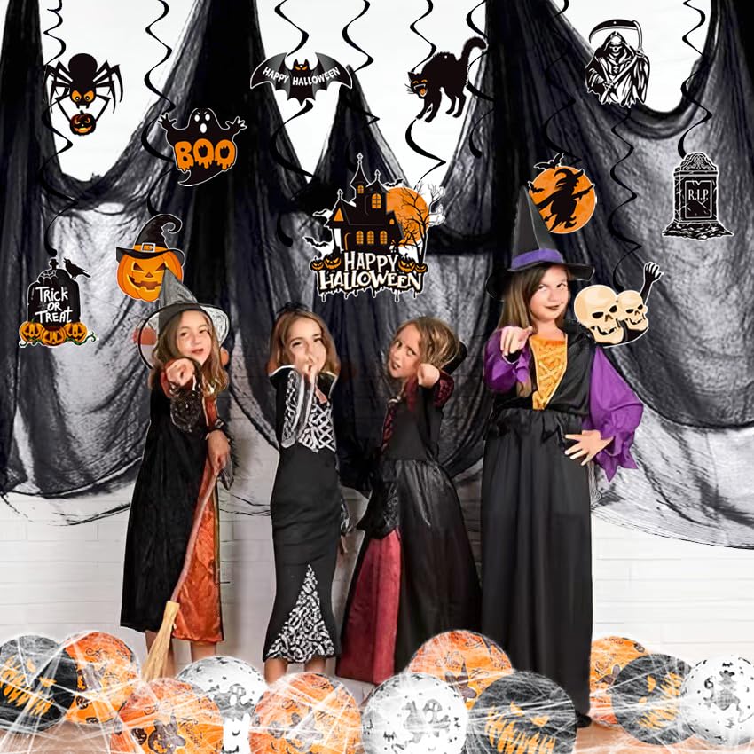 Verwandle dein Zuhause in die ultimative Gruselburg! Dieses Mega-Halloween-Set enthält alles für die perfekte Horror-Party: 20 bedruckte Luftballons mit Geistern, Kürbissen und Grabsteinen, ein riesiges 'HAPPY HALLOWEEN'-Banner, gruseligen Schleierstoff, leuchtende Aufkleber, Spinnennetz mit kleinen Spinnen und 12 realistische Fledermäuse. Alle Motive sind perfekt aufeinander abgestimmt für ein professionelles Gesamtbild. Einfach zu installieren mit beiliegendem Befestigungsmaterial. Die Ballons eignen sich für Helium oder Luft. Perfekt für TikTok-Videos, Fotosessions oder um deine Gäste gebührend zu erschrecken. Mach deine Halloween-Party zum unvergesslichen Erlebnis!