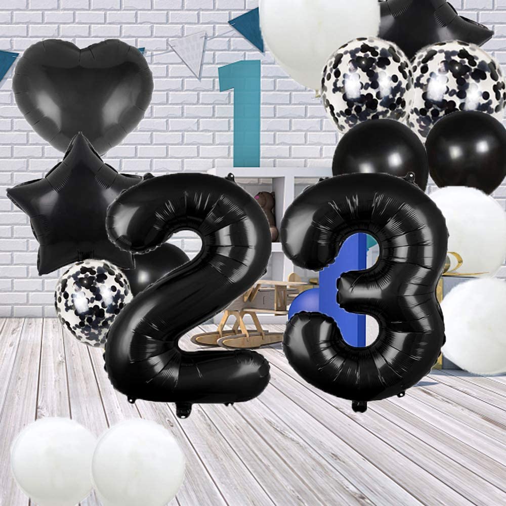 Wow, damit wirfst du die krasseste 21. Geburtstags-Party ever! Das Komplett-Set hat alles, was du brauchst: Riesen 32-Zoll '21' Folienballon, 'Happy 21th Birthday' Tortendeko, Girlande, 12 Latex-Ballons, 6 Konfetti-Ballons, plus 2 Herz- und 2 Stern-Folienballons (je 18 Zoll) - und natürlich Bänder für alles. Alles in edlem Schwarz gehalten, sieht richtig stylisch aus. Die Tortendeko ist aus lebensmittelechtem Material, also super für Kuchen, Cupcakes und Co. Die Ballons sind aus Naturkautschuk und Alufolie - halten gut und sind sicher. Macht sich übrigens auch mega auf Fotos! Einfach aufblasen und dekorieren - schon hast du ne Party-Location, die sich sehen lassen kann. Und falls was nicht passt: Kein Stress, wir kümmern uns drum. Perfekt für Jungs und Mädels, die ihren 21. gebührend feiern wollen!