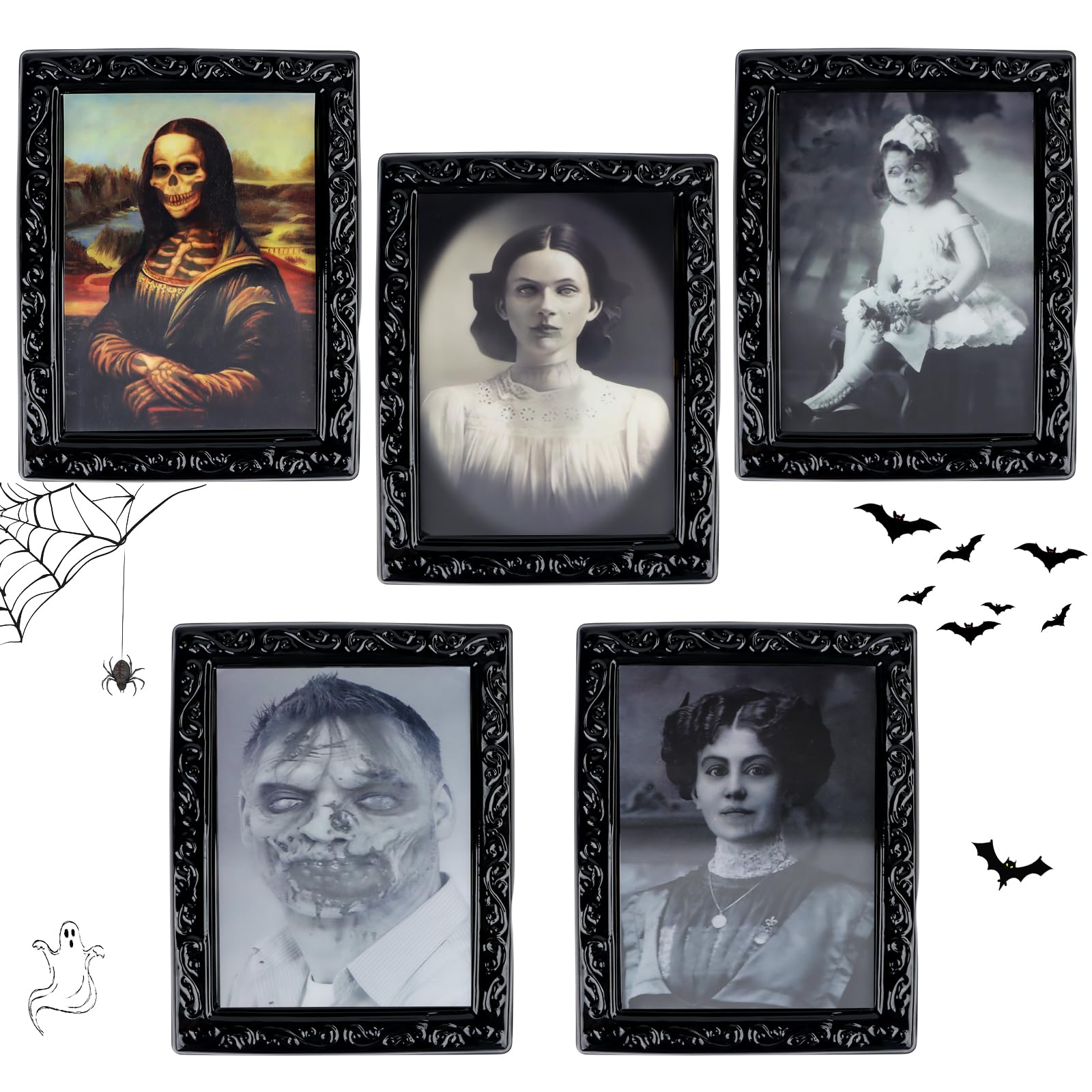 Grusel-Fans aufgepasst! Diese 4 Halloween-Horror-Porträts sind der Hit für deine Grusel-Party. Siehst du sie von vorne, sind es normale Porträts - aber wechselst du den Blickwinkel, erscheinen gruselige Geister! Jedes Bild ist 28x22 cm groß und aus Kunststoff. Einfach an die Wand hängen und deine Gäste erschrecken. Perfekt für Halloween-Partys, Gruselkeller oder als Deko im Flur. Die schwarz-weißen Motive sind echt creepy! Mach dein Zuhause zur Horror-Hochburg - deine Freunde werden staunen (und gruseln)! Einfach zu installieren und wiederverwendbar.