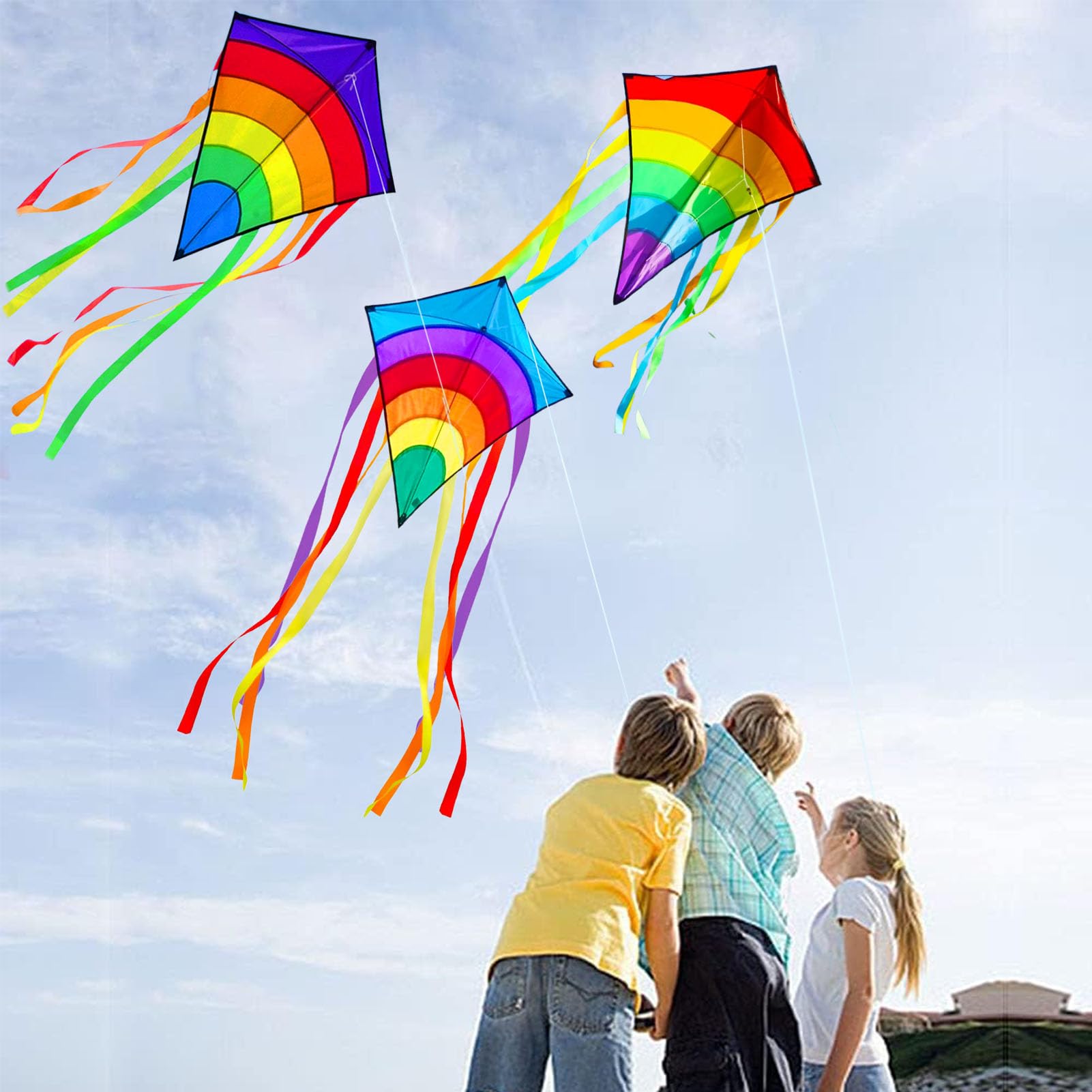 Drachensteigen macht einfach immer Spaß - und mit diesem Set doppelt! Du bekommst zwei kunterbunte Delta-Drachen, die deine Kinder begeistern werden. Mit 140cm Spannweite und 75cm Höhe sind sie groß genug für spektakuläre Flugmanöver, aber dennoch einfach zu handhaben. Jeder Drachen hat 8 bunte Schwänze mit je 200cm Länge, die im Wind wunderschön tanzen. Die 100m lange Drachenschnur am praktischen Wickelgriff gibt dir genug Spielraum für hohe Flüge. Hergestellt aus robustem Nylongewebe und flexiblen Glasfaserstangen halten die Drachen so einiges aus - und sind sogar wasserresistent! Perfekt für Kinder ab 3 Jahren, aber auch Erwachsene haben ihren Spaß damit. Die Montage ist super einfach - keine komplizierten Knoten oder besonderes Zubehör nötig. Ob am Strand, auf der Wiese oder im Park - dieses Set sorgt für unvergessliche Familienerlebnisse in der Natur. Ein tolles Geschenk für Geburtstage oder einfach so. Schaff wertvolle Erinnerungen mit deinen Kindern und erlebt gemeinsam das Gefühl von Freiheit und Abenteuer!