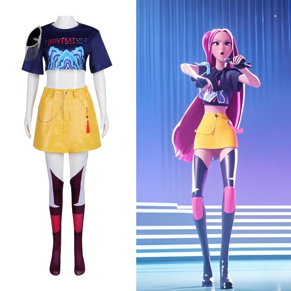 Verwandle dich in die stylische Zoey aus K-Pop Demon Hunters! Dieses komplette Cosplay-Set macht dich zum Star auf jeder Convention, Halloween-Party oder Anime-Veranstaltung. Das Ensemble besteht aus einem modernen Oberteil, einer passenden Hose und einem charakteristischen Gürtel - alles originalgetreu nach dem Vorbild der beliebten Serie. Die hochwertige Verarbeitung sorgt dafür, dass du dich frei bewegen kannst, während du in der Rolle bleibst. Perfekt für Fotoshootings, Bühnenauftritte oder einfach nur zum Angeben unter Gleichgesinnten. Jedes Detail wurde sorgfältig gestaltet, um die authentische Ästhetik des Charakters einzufangen. Ob du ein erfahrener Cosplayer bist oder gerade erst anfängst - dieses Set gibt dir alles, was du für den perfekten Auftritt brauchst. Zeig deine Leidenschaft für K-Pop und Fantasy und werde zum Mittelpunkt jeder Veranstaltung! Einfach anziehen und in die Rolle schlüpfen - mehr braucht's nicht für unvergessliche Cosplay-Momente.