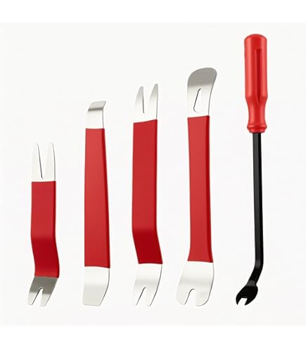 Schraubst du auch gerne selbst am Auto? Dieses Demontage-Werkzeuge Set ist genau das Richtige! Speziell fürs Ausbauen von Autoradios, Türverkleidungen, Zierleisten und Fensterverkleidungen. Aus Spezialkunststoff - kratzt nichts an, super schonend für dein Auto. Ergonomische Griffe liegen perfekt in der Hand für präzises Arbeiten. Leicht und kompakt - passt in jede Werkzeugtasche. Auch super für Haushalts- und Elektronikprojekte. Richtig robuste Verarbeitung, hält lange durch. Macht das Schrauben so viel einfacher und sicherer. Kein Gefummel mehr mit Schraubenziehern oder anderen ungeeigneten Werkzeugen. Einfach das richtige Tool nehmen und loslegen. Für Heimwerker und Profis gleichermaßen geeignet. Ein Muss für jede Auto-Werkstatt!