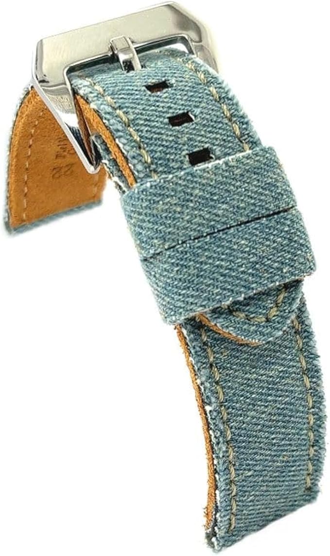 Verpasse deiner Uhr einen lässigen, urbanen Look mit diesem diloy Denim-Armband! Das Besondere: Der ausgefranste Denim-Stoff verleiht deiner Uhr sofort diesen coolen Vintage-Charme, den jeder haben will. Innen ist das Armband mit weichem Kalbsleder gefüttert, was für super Tragekomfort sorgt - selbst an heißen Tagen oder beim längeren Tragen. Erhältlich in verschiedenen Breiten (18mm, 20mm, 22mm, 24mm) und in tollen Farben wie Schwarz, Dunkelblau, Mittelblau, Hellblau, Beige und Militärgrün. Das Armband ist gepolstert, liegt damit perfekt am Handgelenk an und sieht voller aus. Passt zu den meisten Uhren mit geraden Bandanstößen - ob Quarz, Automatik oder Chronograph. Im Lieferumfang ist sogar ein Werkzeug enthalten, sodass du das Band ganz easy zu Hause wechseln kannst. Entwickelt und gefertigt in Spanien von diloy, die seit 1960 wissen, wie man gute Uhrenarmbänder macht. Für alle, die ihrem Uhren-Outfit eine persönliche Note verleihen möchten!