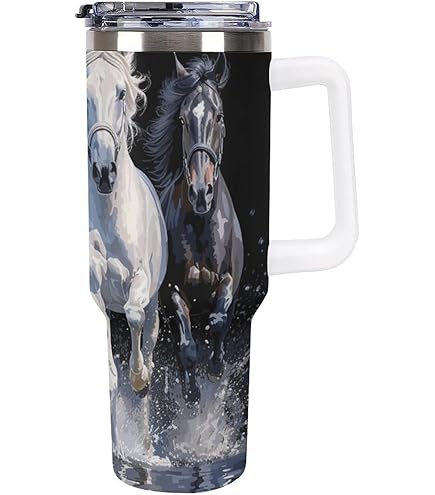 Trinkgenuss mit Stil! Dieser 1,2L Edelstahlbecher mit süßem Pferde-Design hält deine Getränke stundenlang heiß oder kalt. Die doppelwandige Vakuumisolierung funktioniert super - kein Schwitzen, kein metallischer Nachgeschmack. Aus lebensmittelechtem 304 Edelstahl innen und robustem 201 Edelstahl außen. Mit praktischem Griff für einfaches Tragen und integriertem Strohhalm. Passt in die meisten Auto-Becherhalter - ideal für unterwegs. Perfekt für Büro, Reisen, Camping, Picknicks oder einfach zu Hause. Ein tolles Geschenk für Pferdeliebhaber zu Geburtstag, Weihnachten oder Muttertag/Vatertag. Bleib hydratisiert in Style!