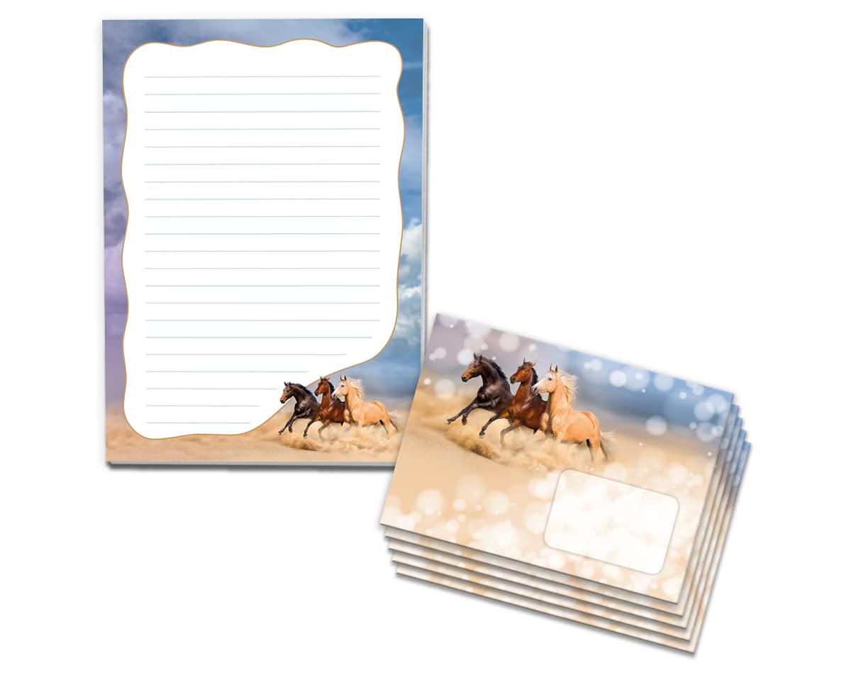Hey, kleine Pferdefans aufgepasst! Dieses bezaubernde Briefpapier-Set mit drei Pferden ist perfekt für kreative Mädchen! Der A5-Block (14,8x21cm) hat 25 linierte Blätter aus hochwertigem 80g-Papier - ideal für Briefe, Geschichten oder Geheimnotizen! Die Rückseiten sind unbedruckt, also viel Platz für Bilder und Kritzeleien! Dazu gibt's 15 haftklebende Umschläge im C6-Format (11,4x16,2cm) - einfach Schutzstreifen abziehen und zukleben! Alles made in Germany - Qualität, die man sieht und fühlt! Wenn dein Kind Pferde liebt, wird es dieses Set absolut lieben! Perfekt für Einladungen, Briefe an Freundinnen oder das Tagebuch! Und falls Pferde nicht das Richtige sind: Es gibt noch viele andere Motive wie Einhörner, Dinosaurier oder Piraten! Fördert die Kreativität und macht einfach Spaß! Ein super Geschenk für Geburtstage oder einfach als Überraschung! Deine Tochter wird begeistert sein - versprochen! Mit diesem hübschen Set macht Schreiben gleich doppelt so viel Spaß!