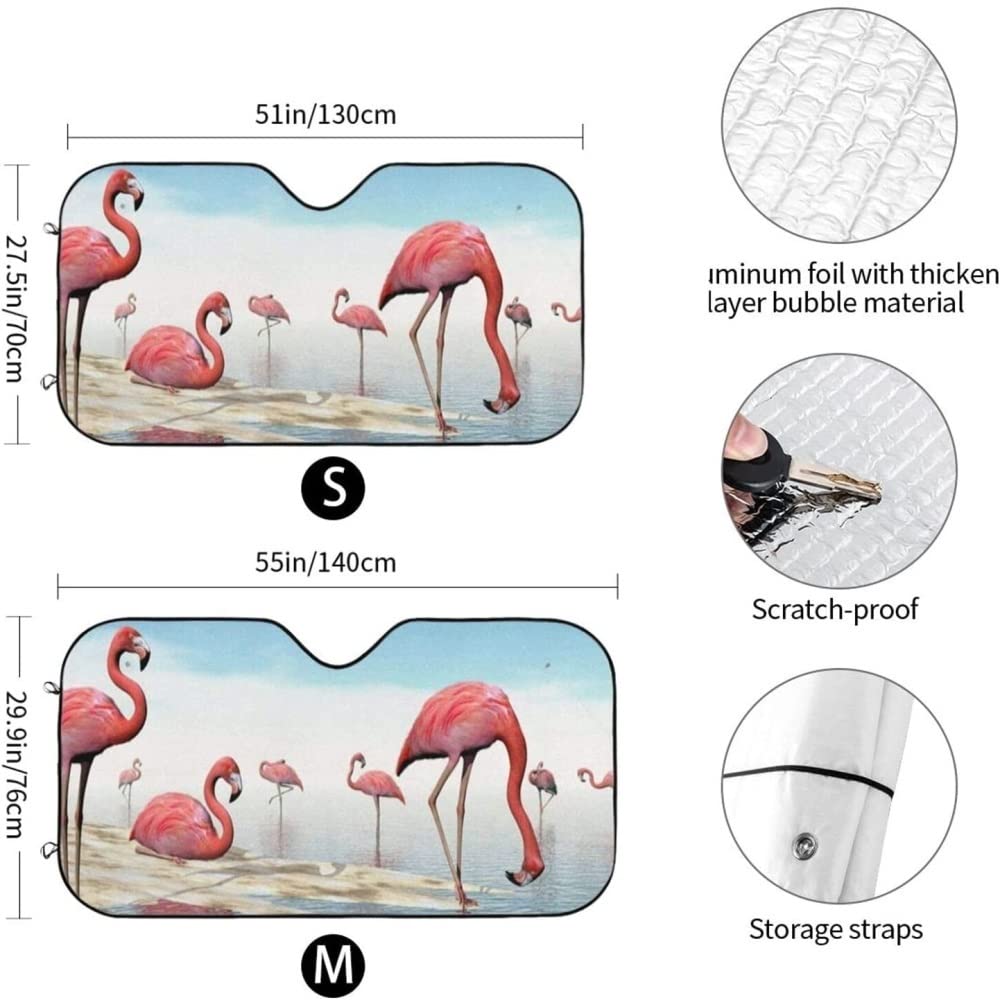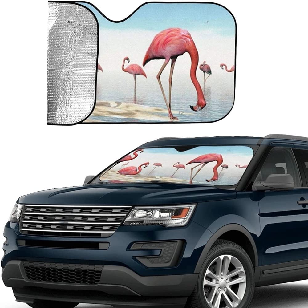 Lass dein Auto nicht zum Backofen werden! Dieser coole Sonnenschutz mit süßem Flamingo-Muster hält deinen Innenraum schön kühl. Aus Polyester und Aluminiumfolie gefertigt - blockiert die Hitze super effektiv. Es gibt zwei Größen: S (130x70cm) und M (140x76cm) - passt also für die meisten Autos, SUVs und Trucks. Mit 4 Saugnäpfen befestigst du ihn ganz einfach an der Frontscheibe. Wenn du wegführst, klappst du ihn einfach zusammen - das elastische Band hält alles kompakt. Perfekt für heiße Tage, ob beim Einkaufen, Arbeiten oder auf Reisen. Deine Sitze bleiben kühl, das Lenkrad nicht mehr brütend heiß. Und das Flamingo-Design macht einfach gute Laune! Einfach waschen, trocknen und immer wieder verwenden. Sommer, Sonne, kühles Auto - so soll's sein!