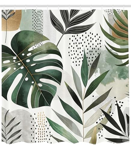 Verwandle dein Badezimmer in eine grüne Oase! Dieser ABAKUHAUS Duschvorhang im Urban Jungle Design mit Aquarell-Look und modernen Memphis-Punkten bringt frischen Wind ins Bad. Aus 100% Polyester-Stoffgewebe - kein billiges Vinyl! Mit 175x200 cm passt er perfekt und inklusive 12 kostenlosen Haken. Super praktisch: wasserabweisend, trocknet schnell nach dem Duschen und maschinenwaschbar. Die Farben bleichen nicht aus dank modernster Digitaldruck-Technik. Sieht aus wie 3D - ein echter Hingucker! Perfekt als Geschenk oder um dein Bad schnell und günstig aufzufrischen. Einfach aufhängen und schon fühlst du dich wie im Dschungel!