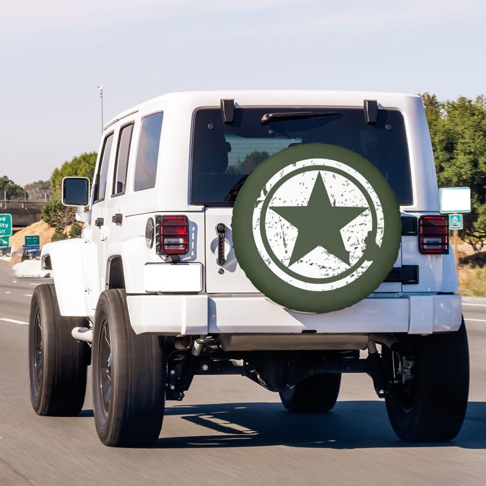 Dein Reserverad sieht langweilig aus? Diese Kiuloam Abdeckung im US Army-Design macht es zum Hingucker! Aus hochwertigem Polyester - komplett wasser- und staubdicht! Mit 38,1 cm passt sie für Reifen von 68,6-73,7 cm Durchmesser. Einfach berechnen: Reifengröße auf der Flanke ablesen und nach Tabelle die richtige Größe wählen! Elastischer Bund mit Schnellverschluss - in Sekunden montiert, kein Werkzeug nötig! Schützt vor Sonne, Regen und Schlamm - dein Reserverad bleibt wie neu! Perfekt für Jeep Wrangler, Honda CR-V, Toyota RAV4 und viele mehr. Einfach überziehen, zuschnappen und sich über den coolen Look freuen!