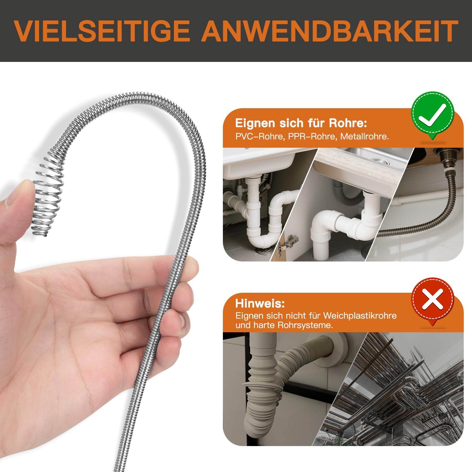 Verstopfte Abflüsse? Diese 10m Rohrspirale macht Schluss damit! Aus rostfreiem Edelstahl, super flexibel für alle Kurven. Perfekt für Küche, Bad, Waschbecken und Abflüsse von 1,3-7,6cm Durchmesser. Das coole: Du kannst sie per Hand kurbeln ODER mit Bohrmaschine (bis 500 U/min) betreiben - dank Adapter super effizient! Im Set dabei: Dicke Latex-Handschuhe und praktische Tragetasche. Umweltfreundlich ohne Chemie, einfach mechanisch reinigen. Die Feststellschraube sorgt für sicheren Halt. Ein Profi-Werkzeug für den Hausgebrauch - damit bekommst du jede Verstopfung weg!